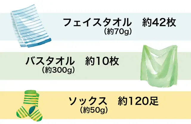 洗濯物の種類として換算すると下記のようになります。