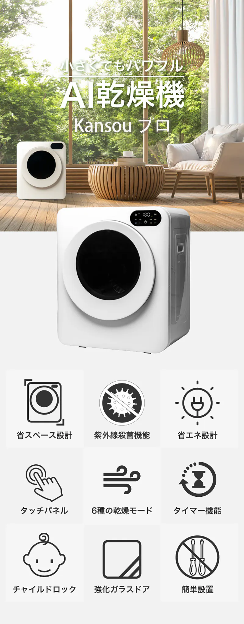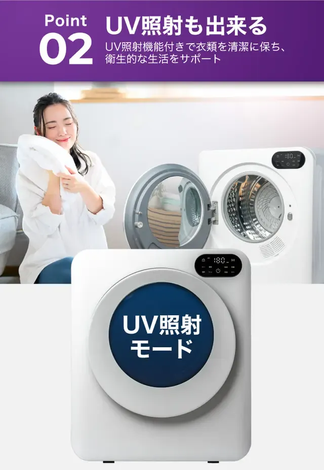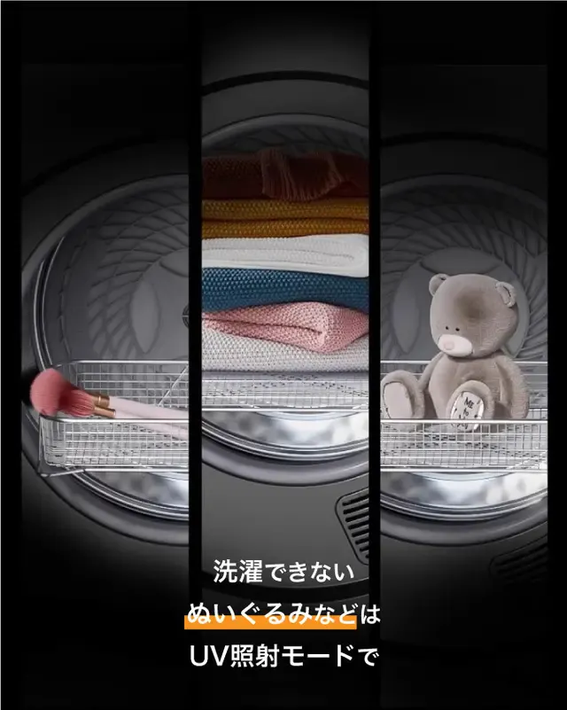 この乾燥機はただ衣類を乾かすだけではありません。紫外線を利用して衣類に残る微細な汚れまでをも徹底的に清潔にし、あなたとあなたの大切な人々を守ります。