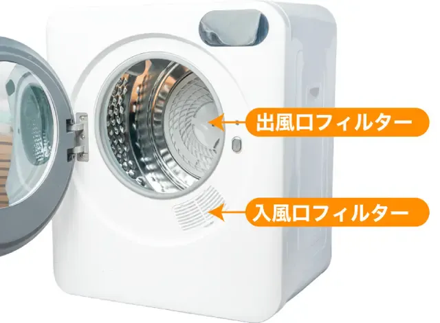 本体全面と本体内部に2つのファイルターが設置してあります。乾燥するために重要な部分となるため、メンテナンスが重要になります。
