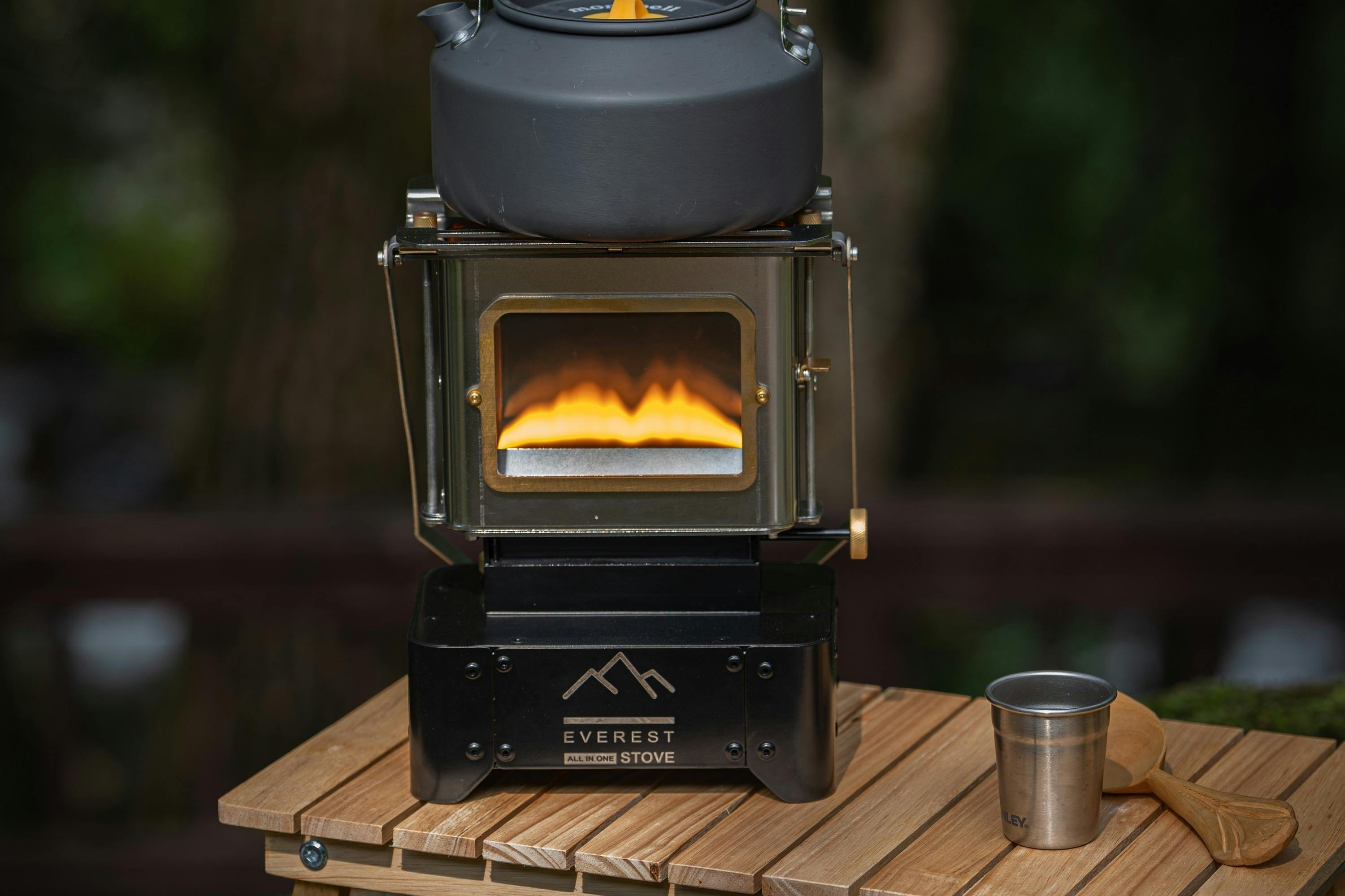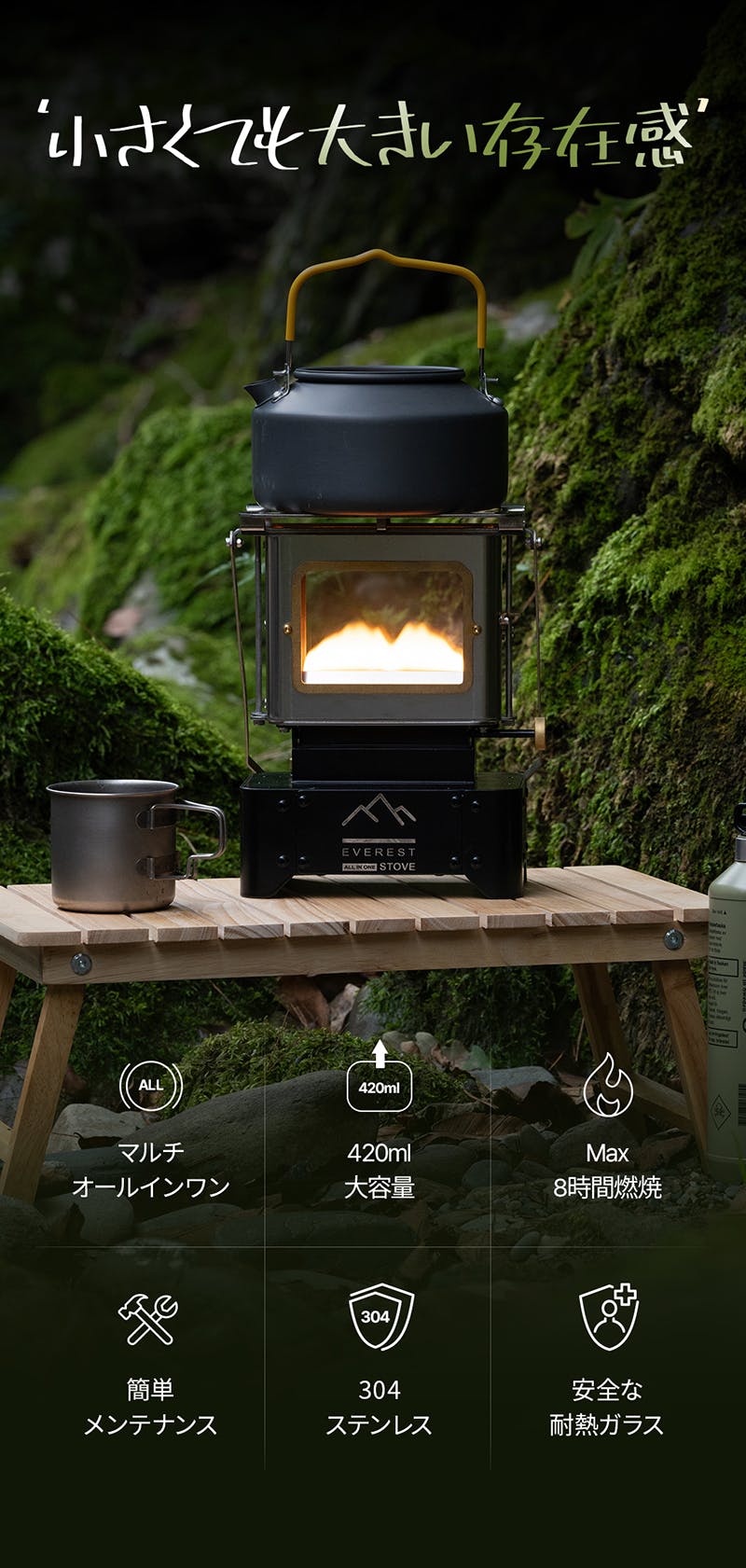 小型アイロンストーブ1つで暖炉も調理も可能!オールインワン オイルランプストーブ