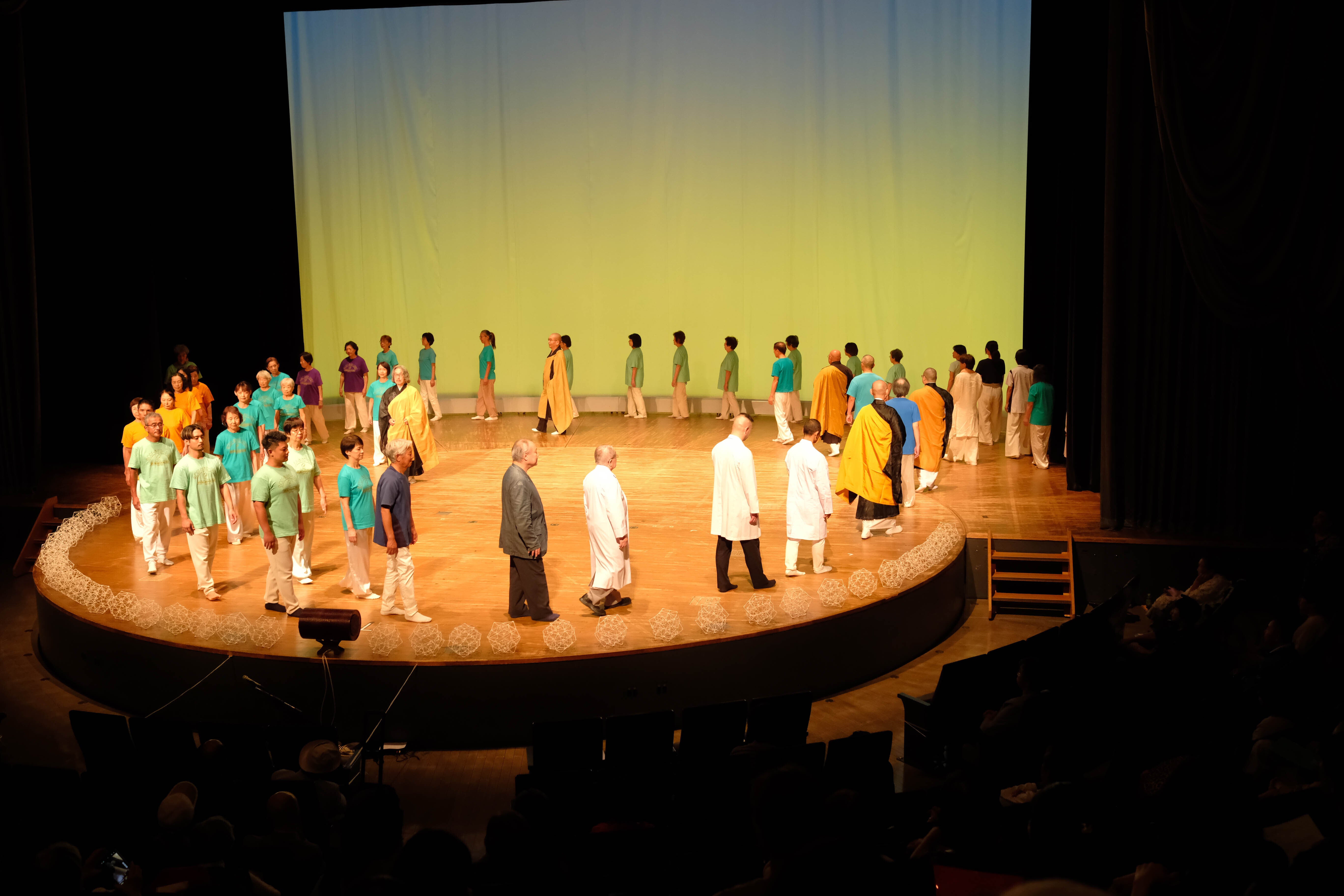 祝福の「人マンダラ」をステージ上に描いていくイメージで、