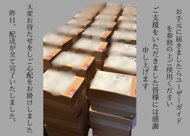 昨日全てのご支援者さまのお届けが完了いたしました。