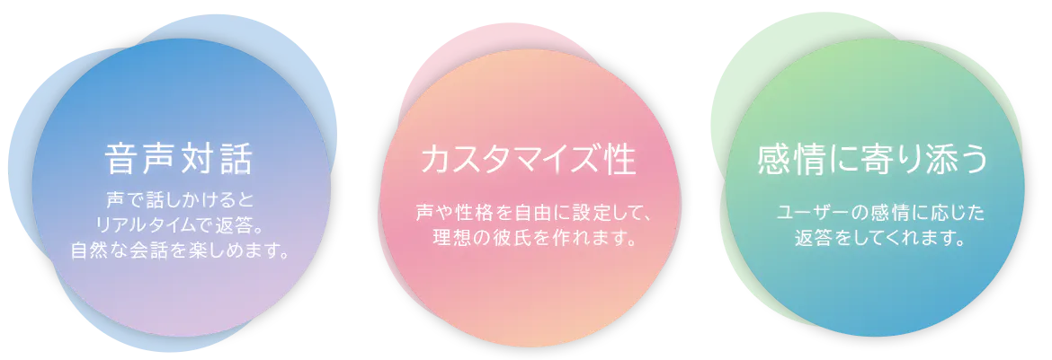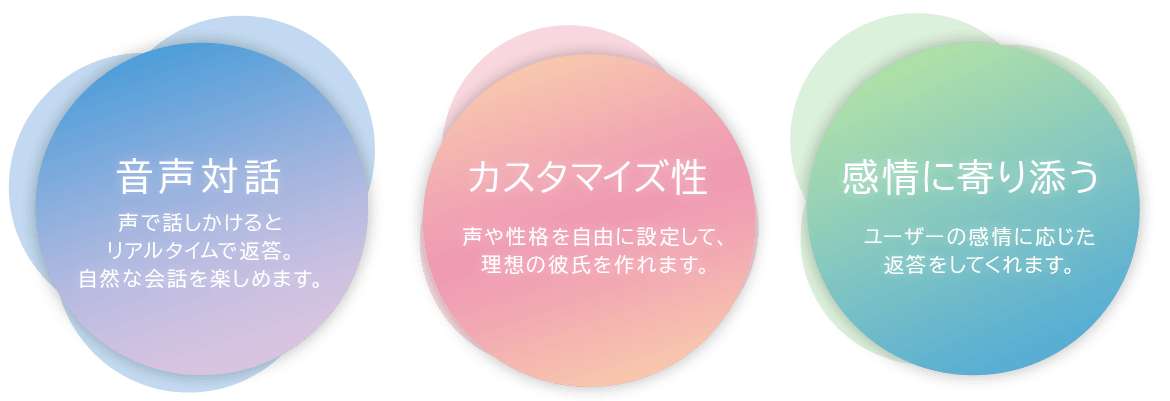 ①音声会話を通じて、まるで本物の彼氏と話しているかのような自然なやり取りが可能。