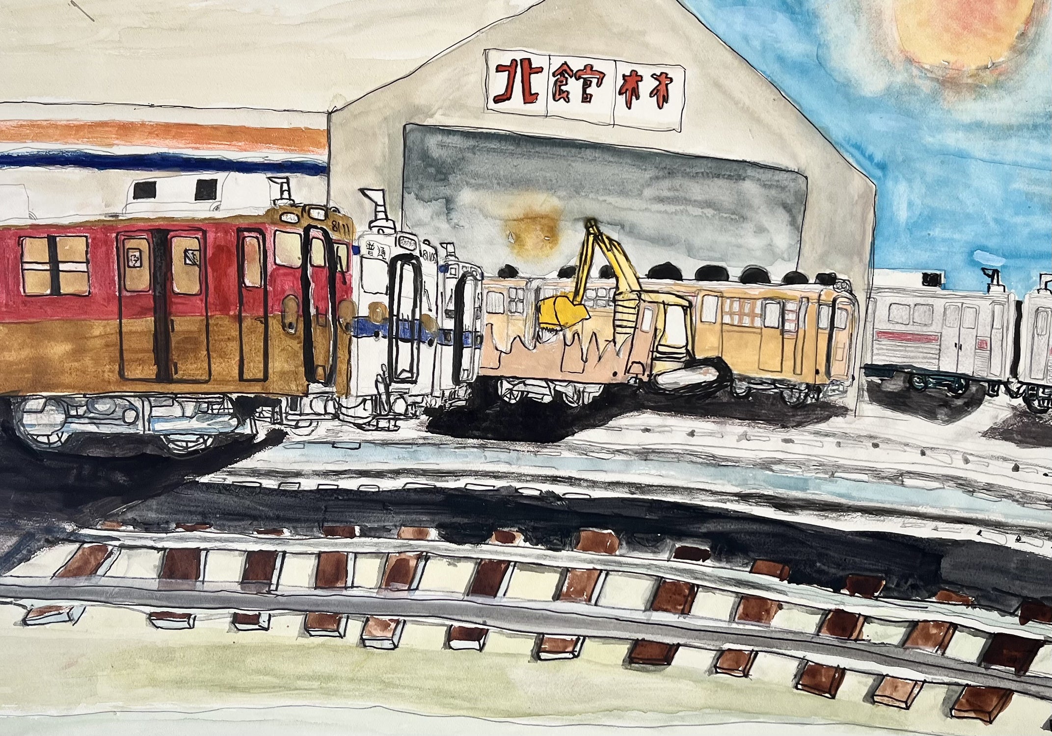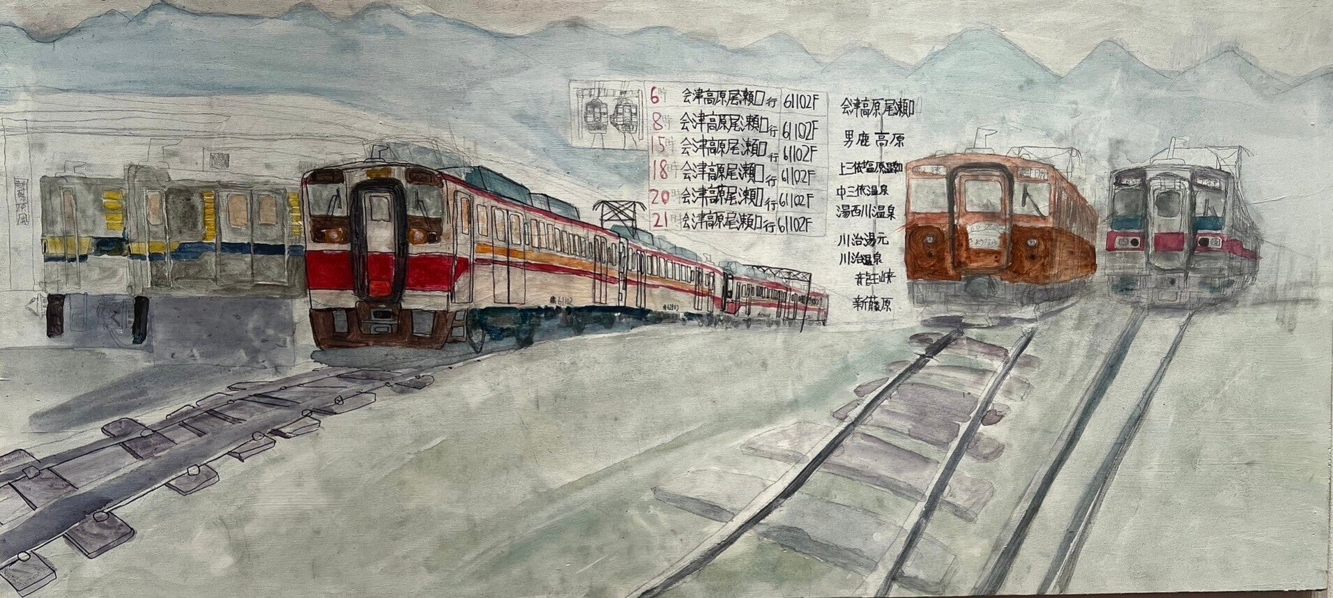 今まで鉛筆や水彩、アクリル絵の具で電車の絵を描いて展示する事で沢山の人たちから声をかけてもらったり、評価をもらったり、お話をする機会をもらったりしました。