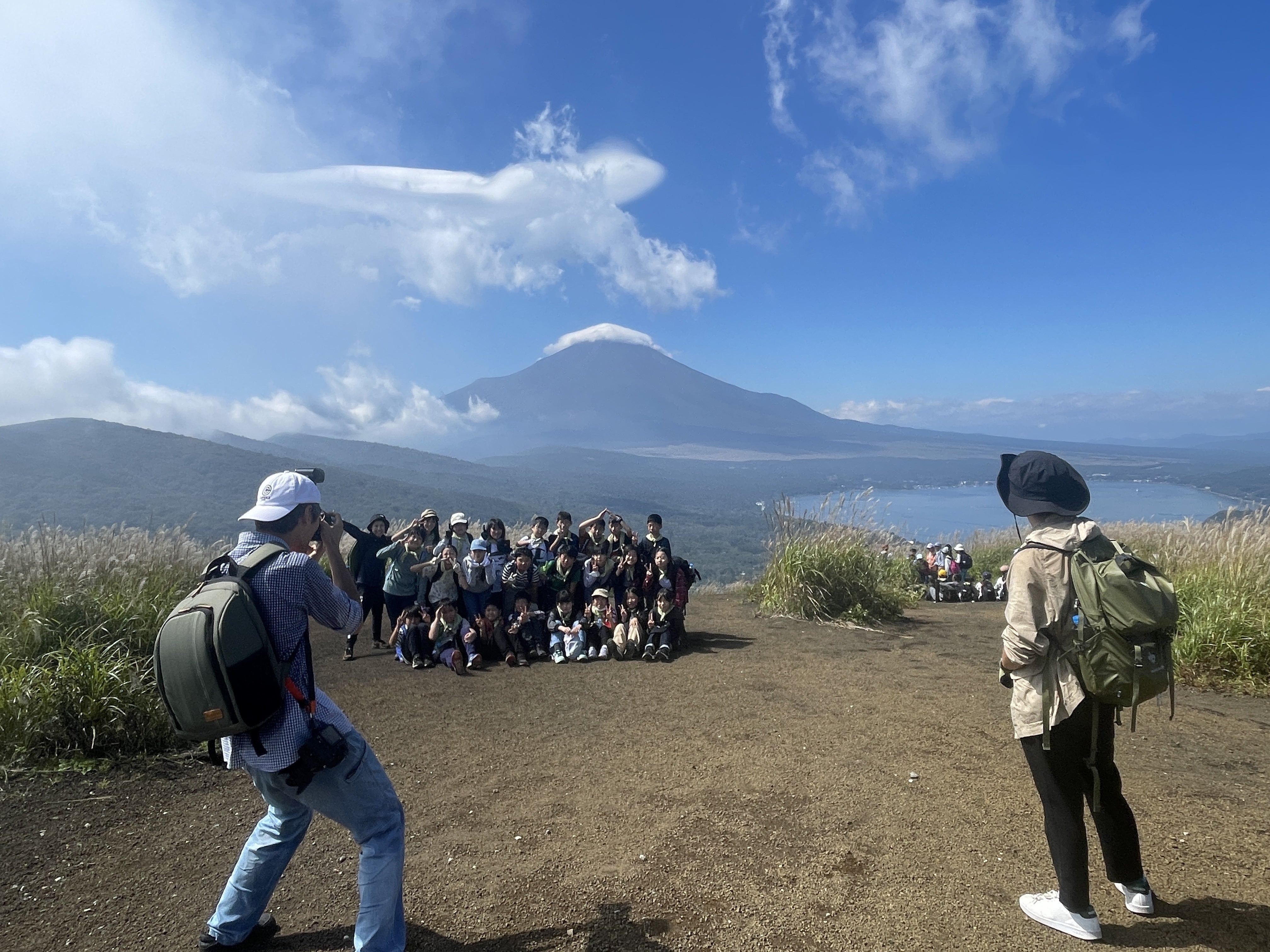 山頂の絶景を求め、多くのハイカーが訪れる/草原の里「山中湖村明神山の草原」(山梨県山中湖村)