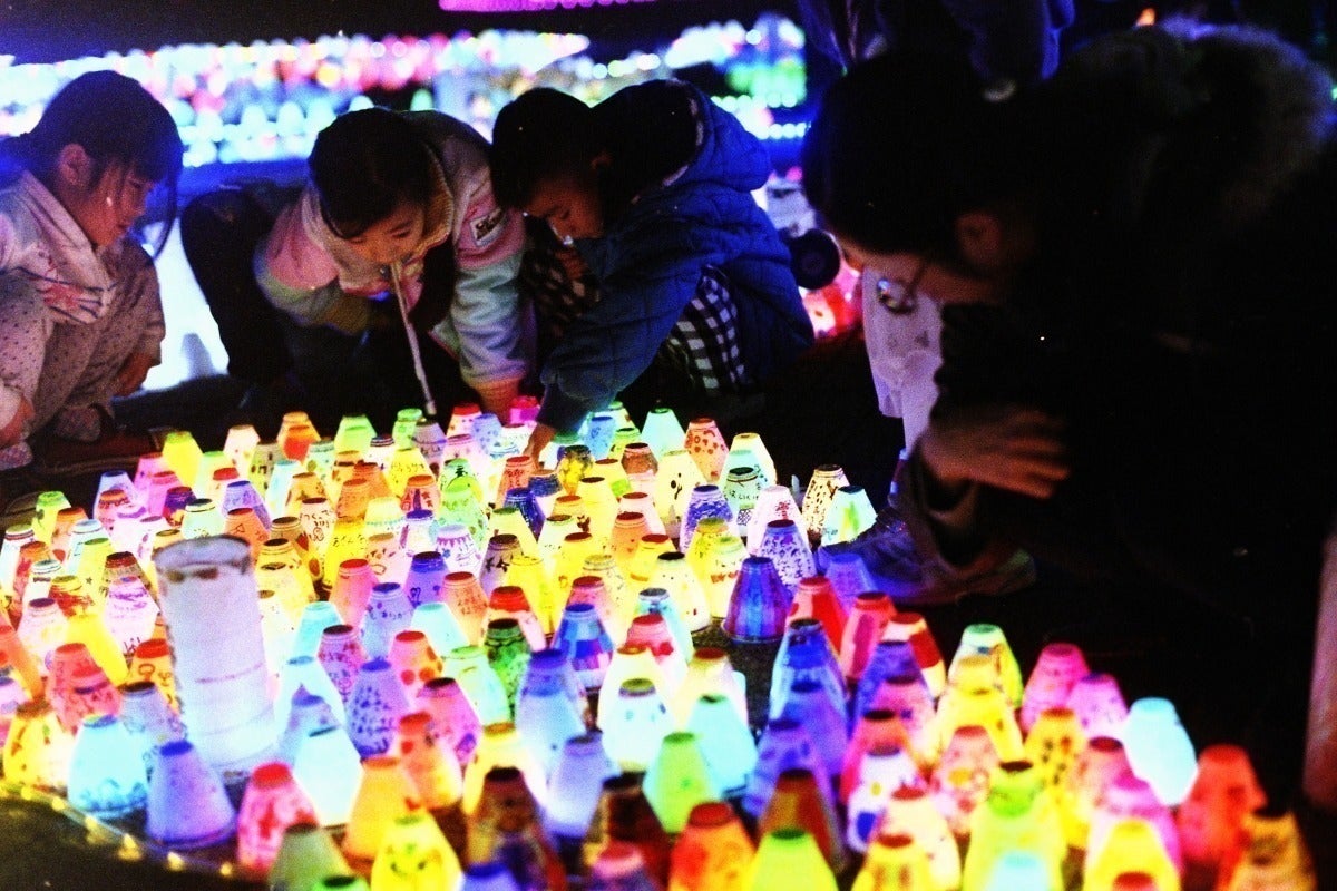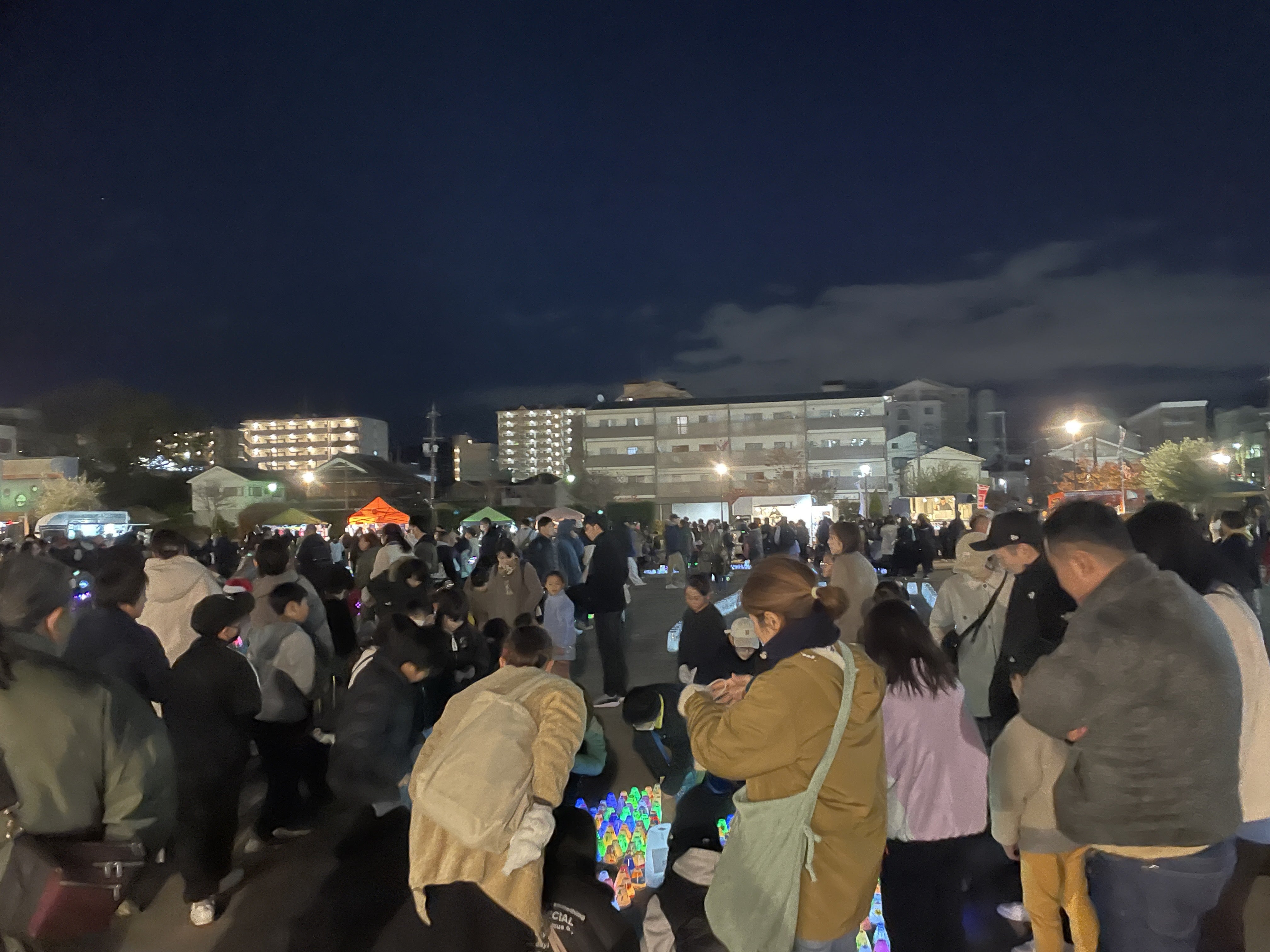 日没を迎えるころにはLEDキャンドルが美しく瞬き、こども達はメッセージカップを見つけにご家族と会場にやってきます。その数延べ約3,000人!これほど子どもたち、お父さん、お母さん、おじいちゃん、おばあちゃんの三世代が集まる市内のイベントは他にあまりないでしょう。