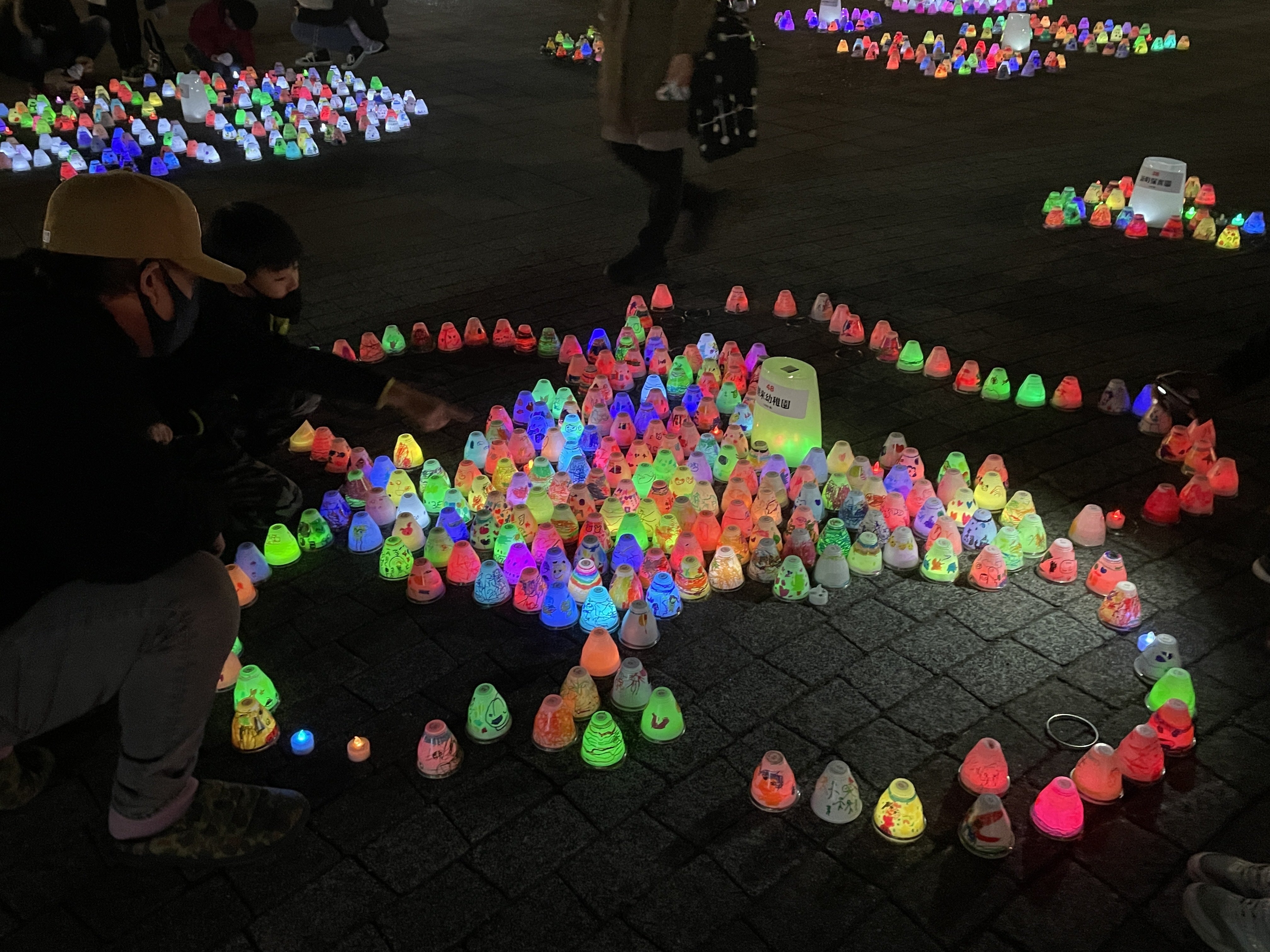 興味をもってくださいましたら、ぜひ大東キャンドルナイト当日の会場へお越しください。子どもたちが描いたメッセージカップを観ながら並べるなかで他のボランティアの方と交流し感動を共有できます。