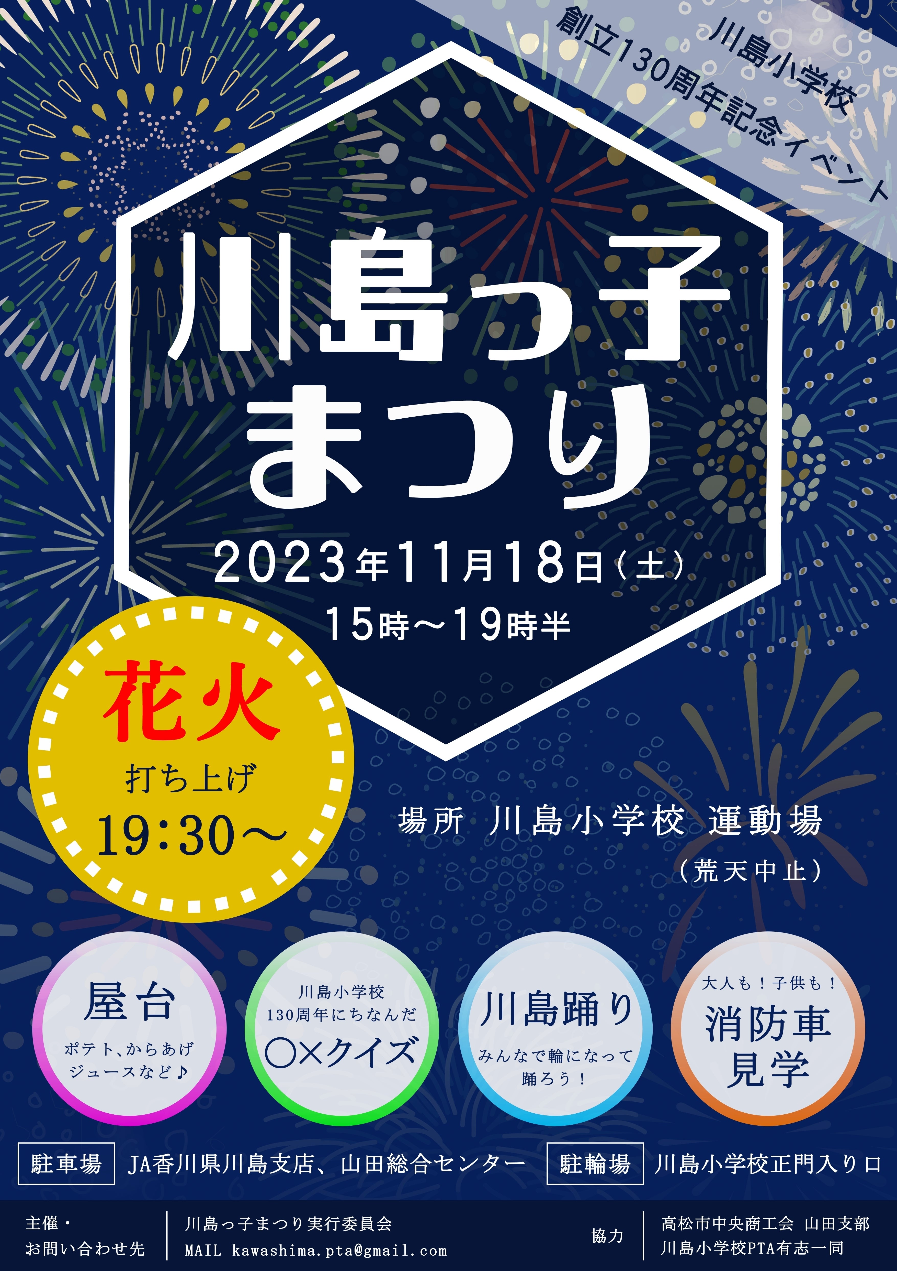 2024年11月16日(土)に開催する「川島まつり」のフィナーレに、花火の打ち上げを計画しています。
