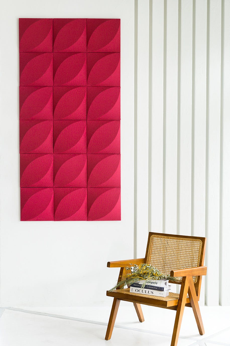 - ①生活の中の耳障りで高音域な響きや ノイズを吸音するワンタッチ取り付けウォールアート
