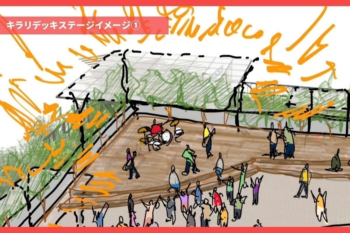 溝の口キラリデッキにステージをつくる!というこの企画が一年の歳月を経てやっとカタチになろうとしています。5センチ上がっただけで、そこは特別な場所このステージは70cmもあがる!?超スペシャルな場所です。