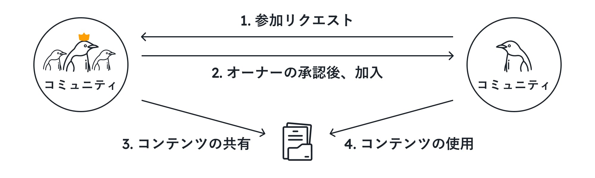・コンテンツの所有者は共有したいコンテンツをあらかじめ選択する必要があります。