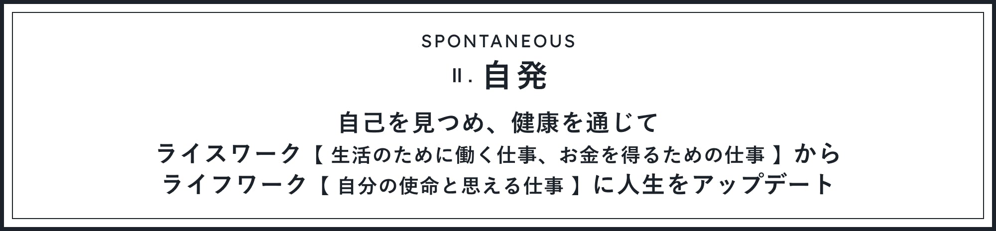 健康を通じてライスワークからライフワークへ、人生をアップデートすることができるのです。
