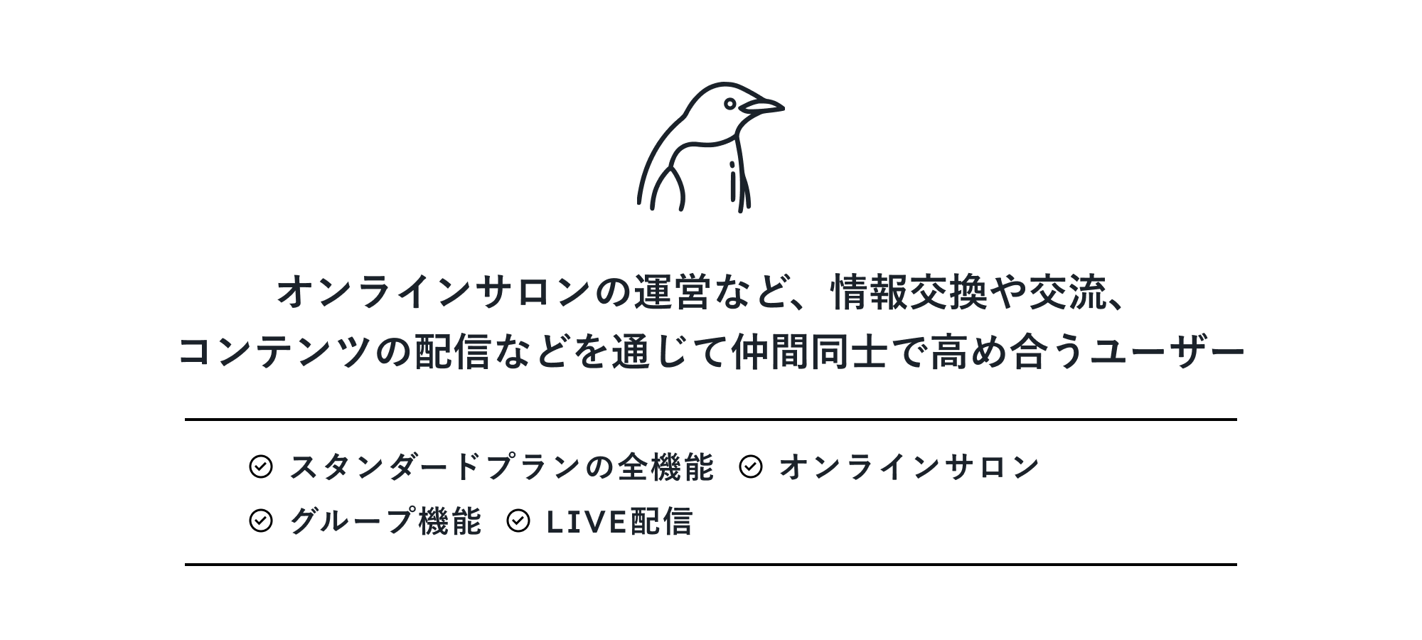 月額制のコミュニティを構築し、主催者と参加者だけが閲覧できる非公開の空間で、情報交換や交流、コンテンツの配信などを行うことができます。