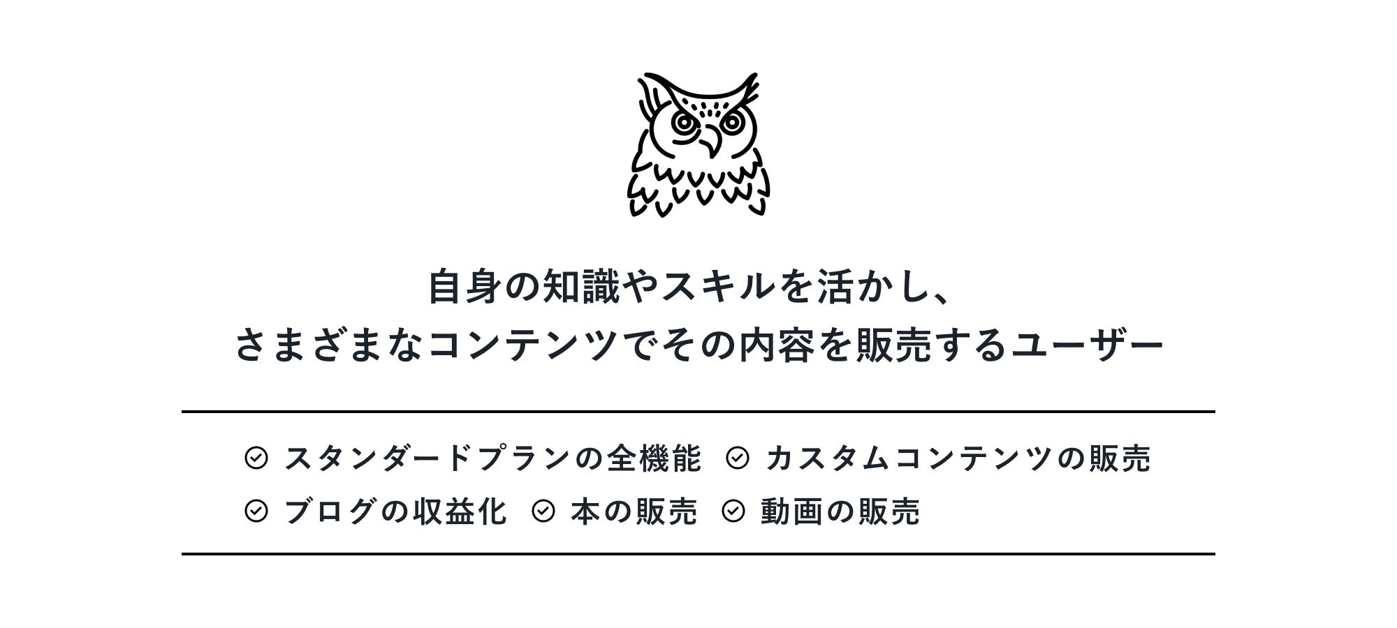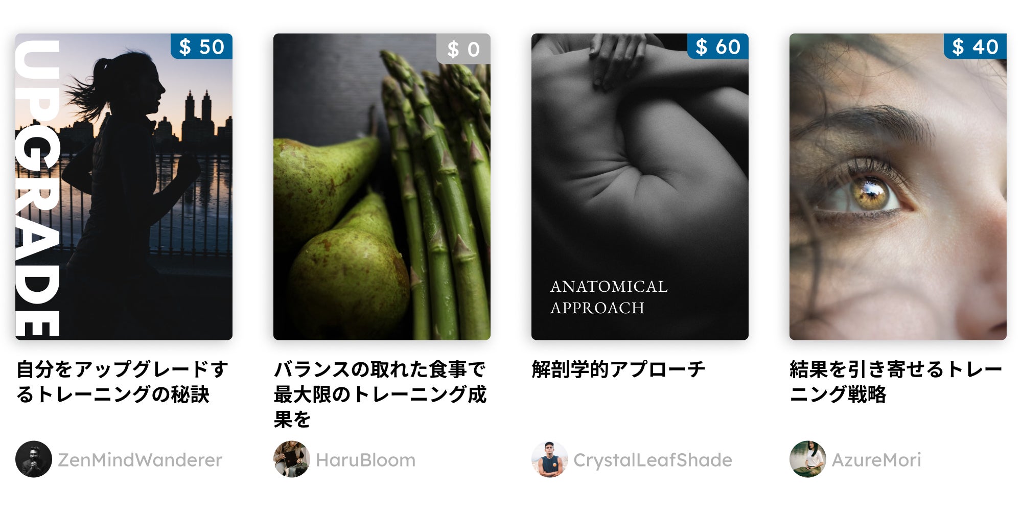 トレーナーは、自身が深めてきた知識を、トレーニングメニュー・食事メニュー・本・オンラインサロンなど、さまざまなコンテンツ内容でユーザーに販売することができます。