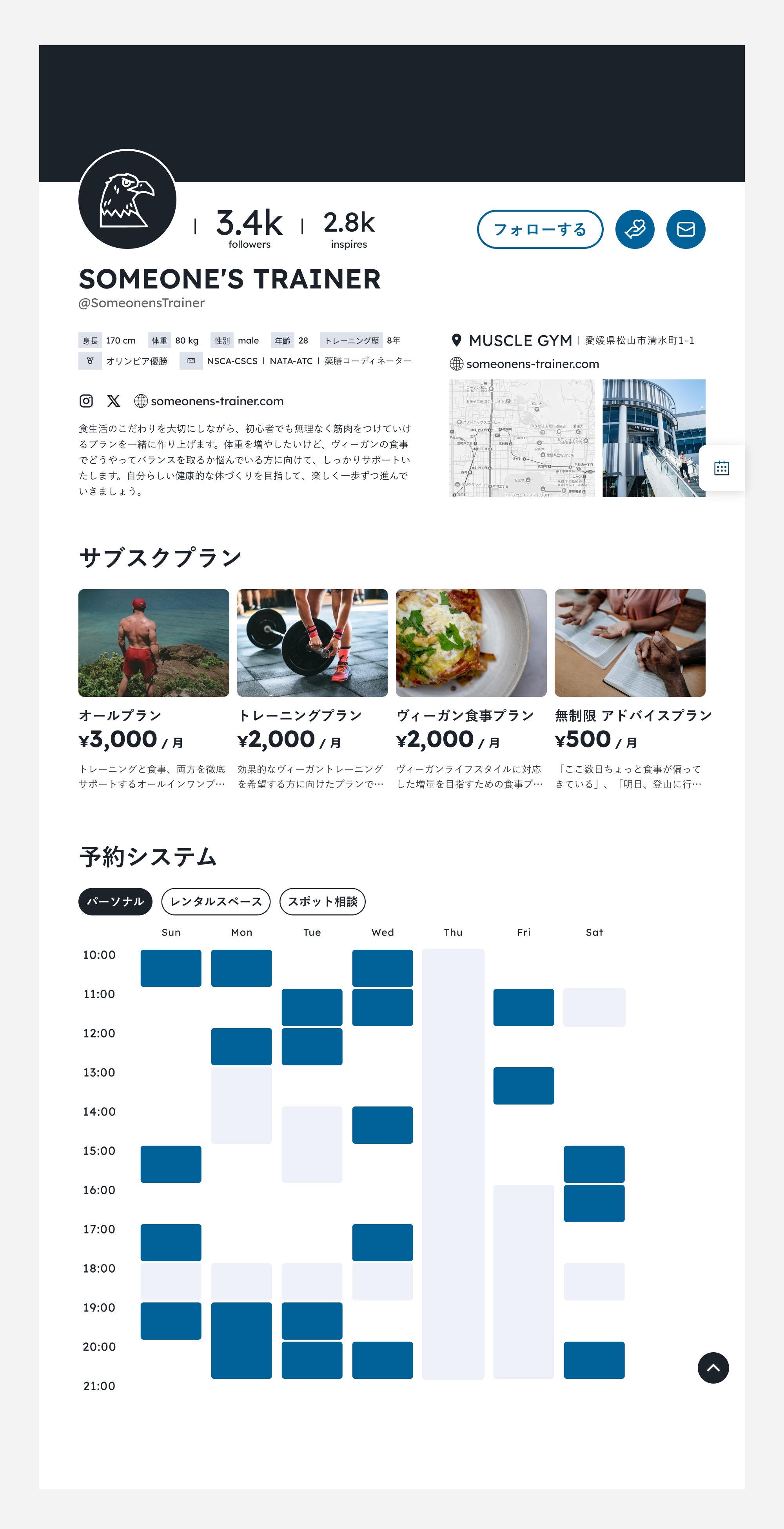 トレーナーは自身のジムを登録することで、この予約システムを活用し、より多くの顧客とのつながりを広げ、ビジネスの成長につなげることが期待できます。