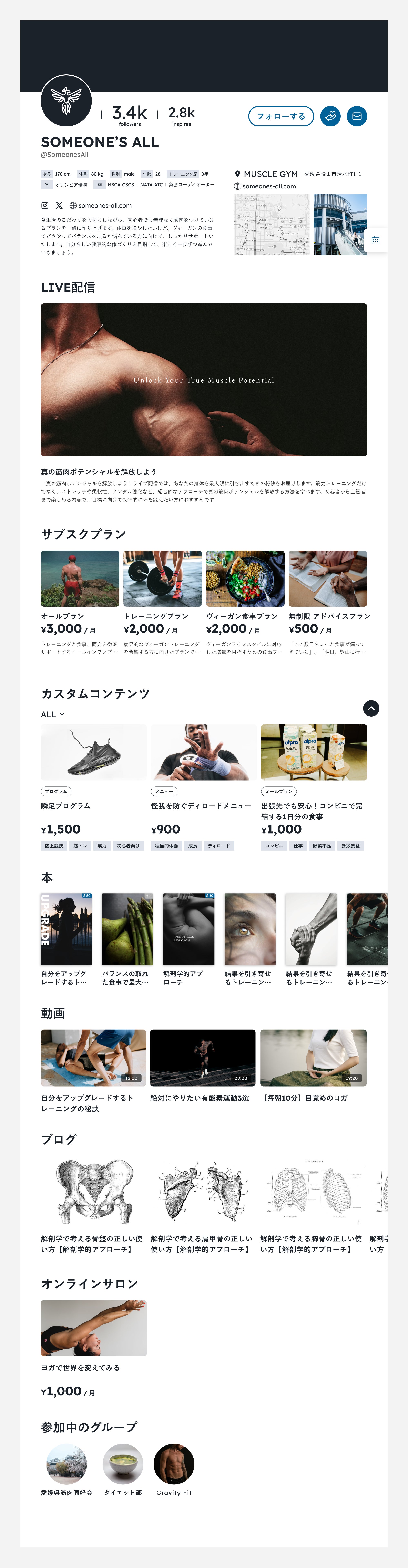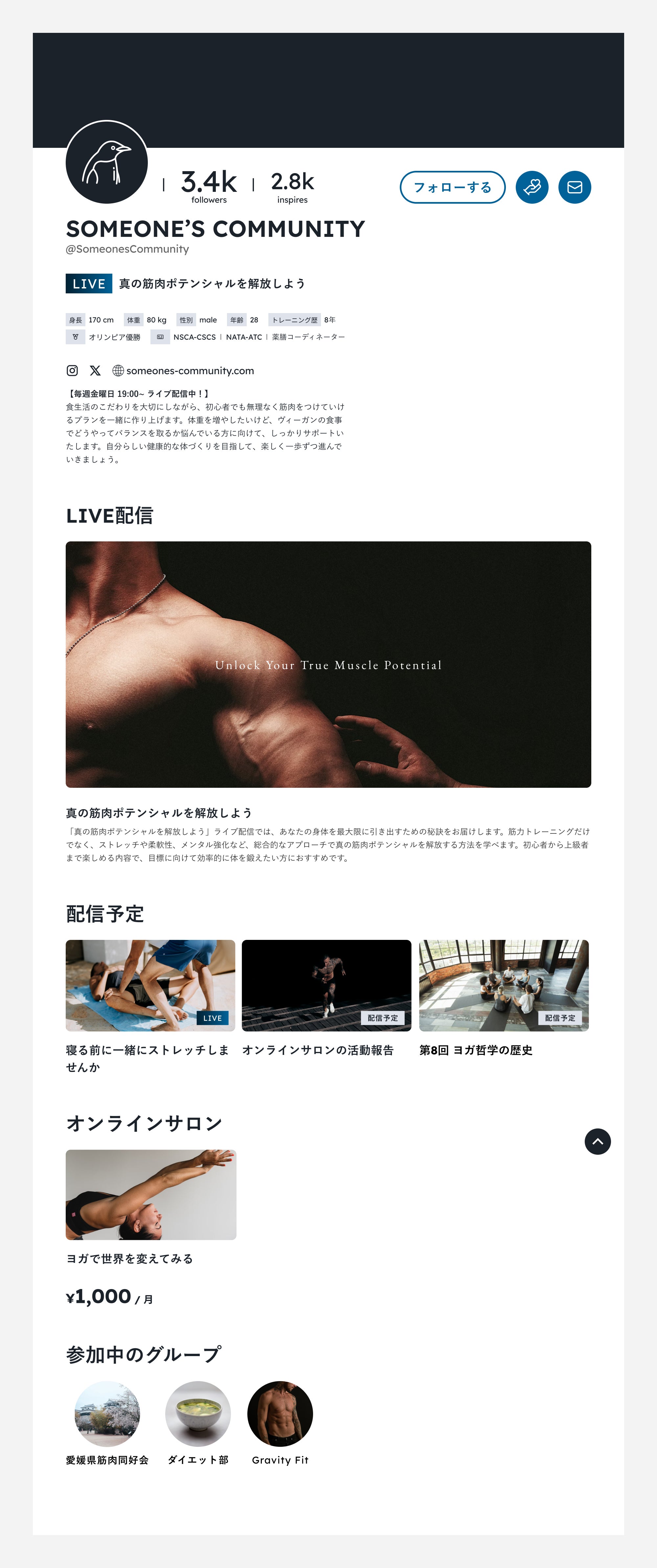 プロフェッショナルから学びを得たい方、自身のスキルを売買したいトレーナー、オンライン上はもちろん、オフラインでもすべての人々が「健康」をテーマに、これまでにない新たなつながりをつくることができるのです。