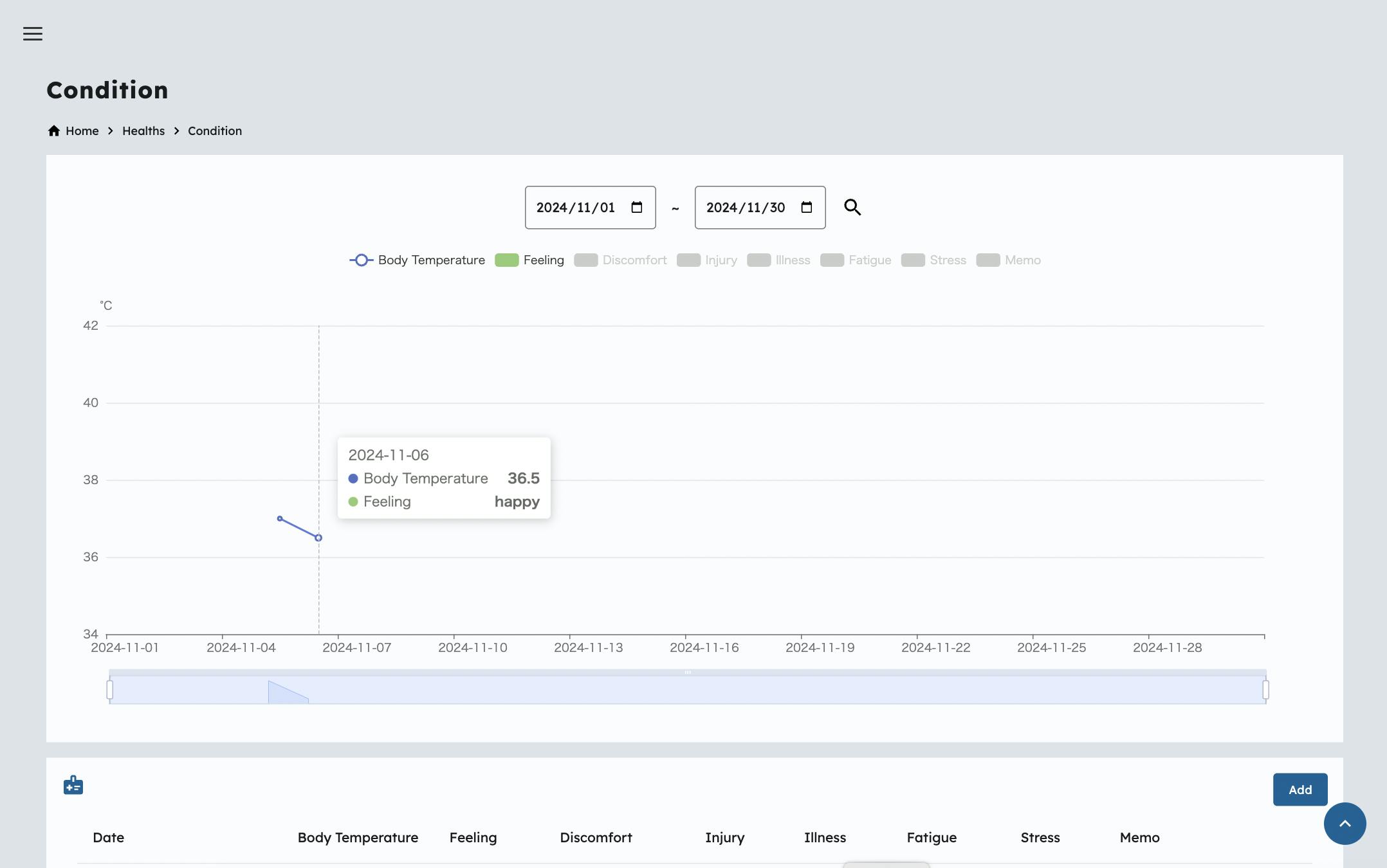 2024/11/05 14:24ヘルスログに新たに「体調」機能が追加されました。体重やウエストサイズ、睡眠時間などの客観的なデータだけでなく、気分や違和感など主観的なデータの記録にぜひ使ってください。アップデート情報 もっと見る