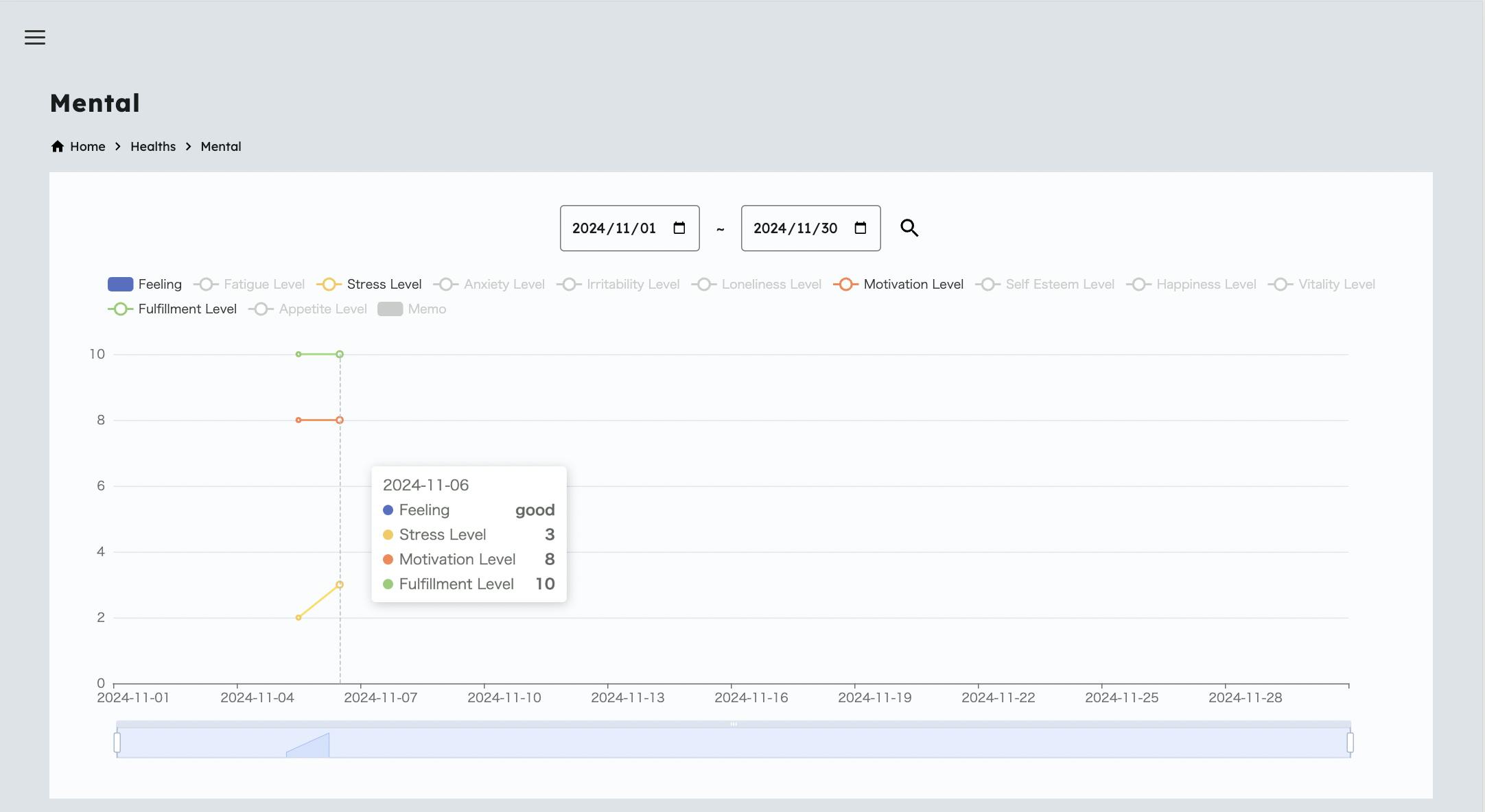2024/11/06 15:36ヘルスログに新たに「メンタル」機能が追加されました。主観的なストレスレベルや幸福度の記録にぜひ使ってください。アップデート情報 もっと見る