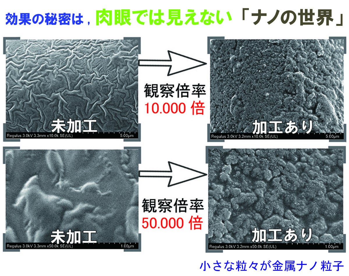 プラチナなどの様々な金属ナノ粒子が、付着したウイルス・菌・悪臭などをスピーディーに除去します!