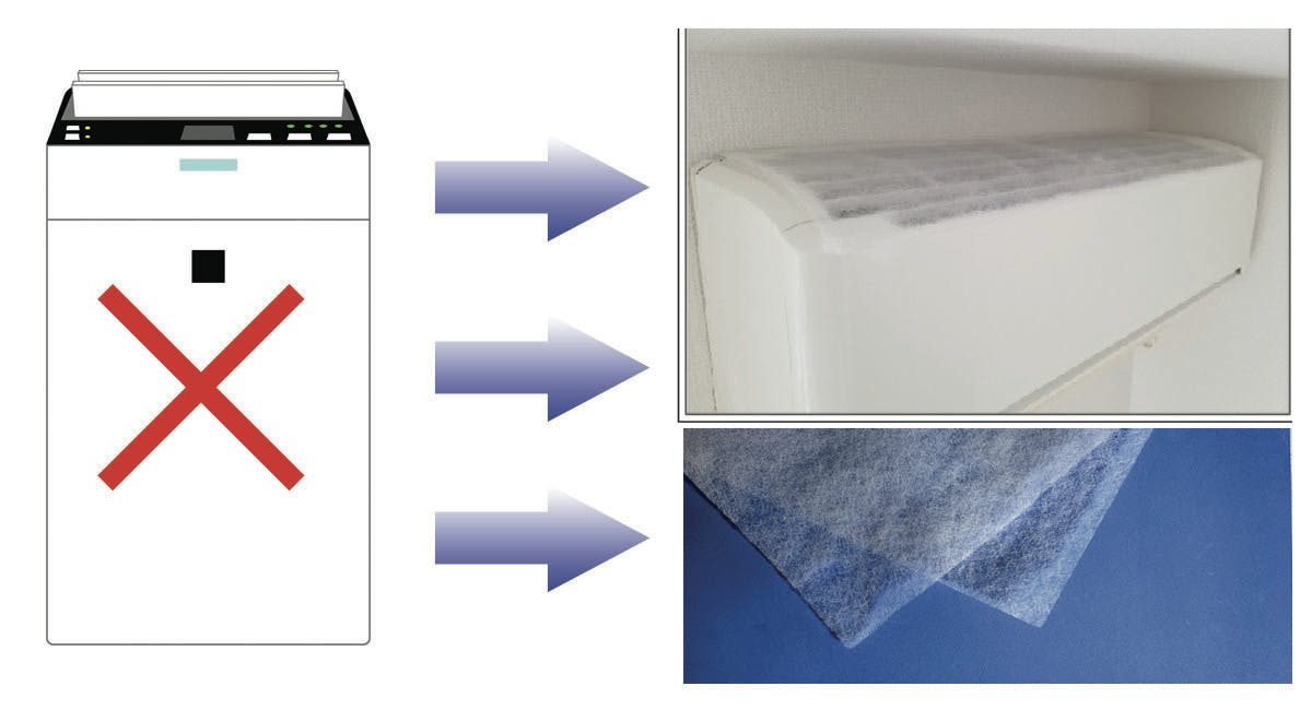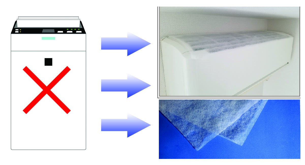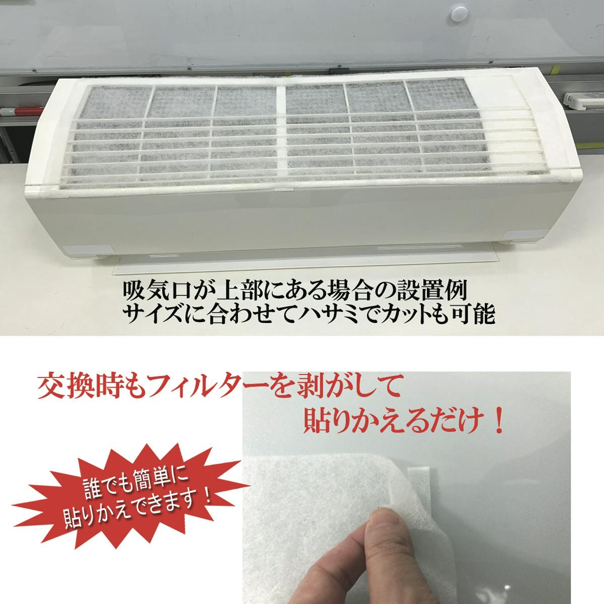 エアコンは室外機から空気を取り入れているのではなく、エアコン自体が室内空気を取り入れて直ぐに放出しています。そのためエアコンに貼るタイプの後付けフィルターに求められるのは、効果のスピードが重要です。
