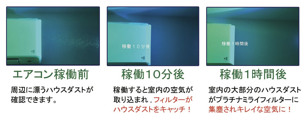 室内浮遊するハウスダストをエアコン稼働で集塵!