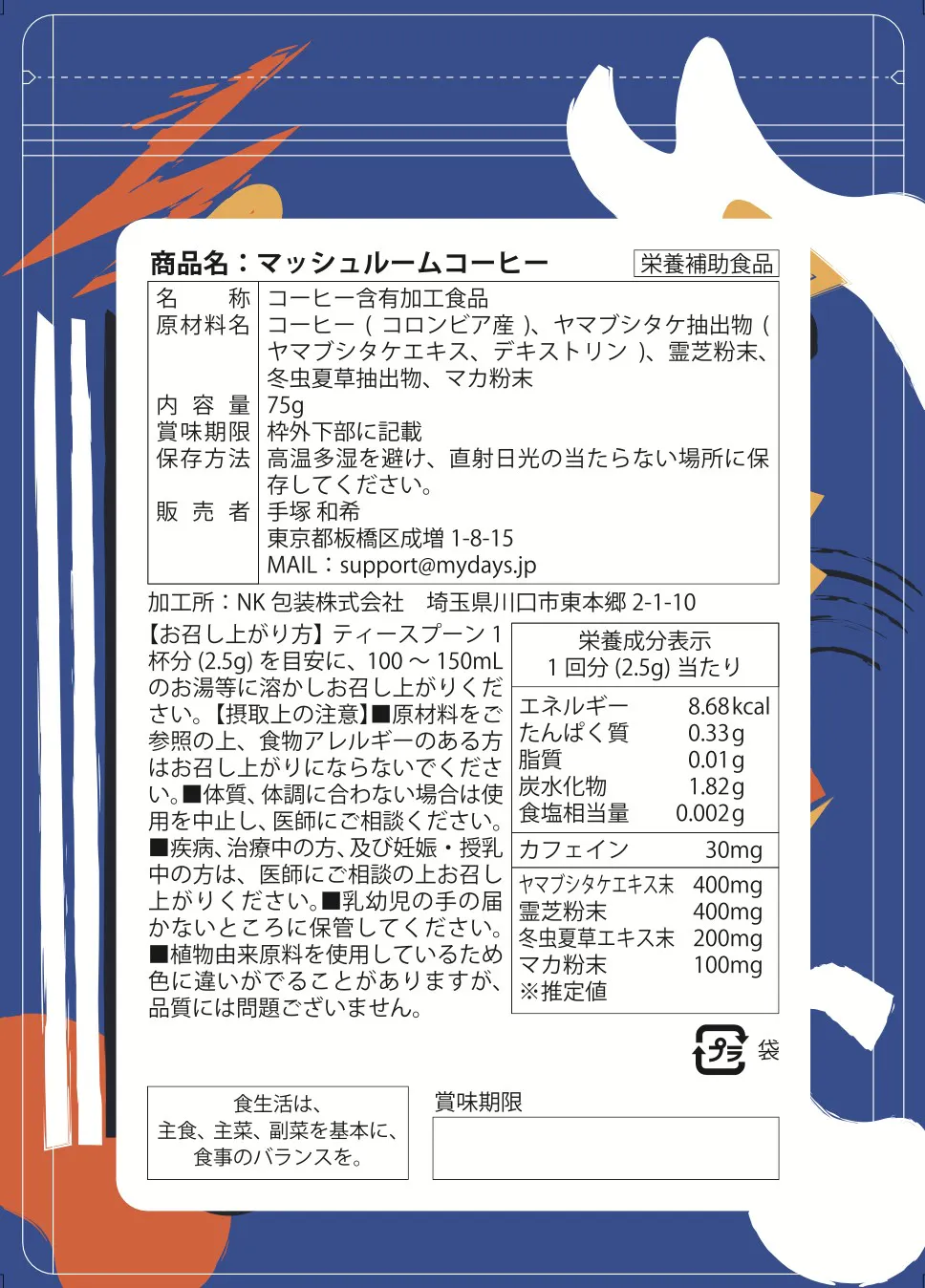 このコンセプトでスタートさせたマッシュルームコーヒ(MYDAY'Sコーヒー)。
