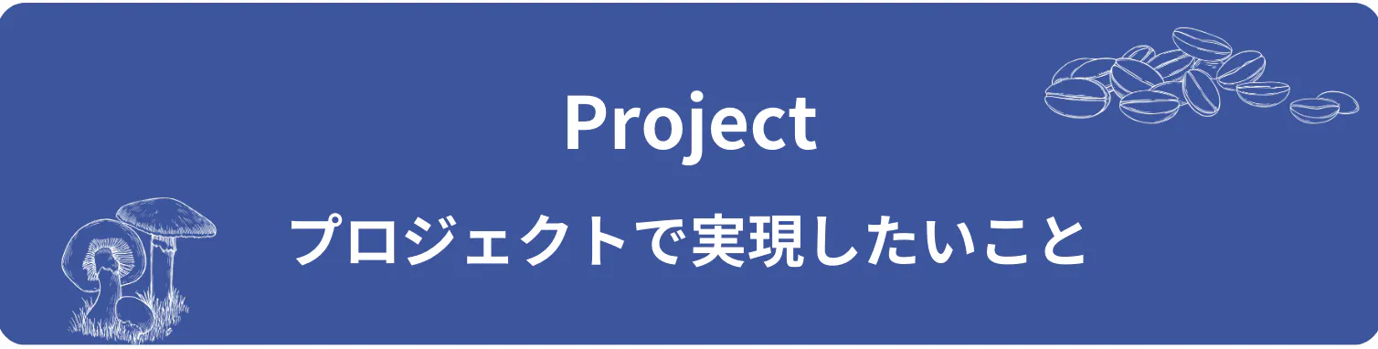 今回のプロジェクトで実現したいことは、『マッシュルームコーヒーを開発し、皆様の毎朝に変化をもたらすこと』です。