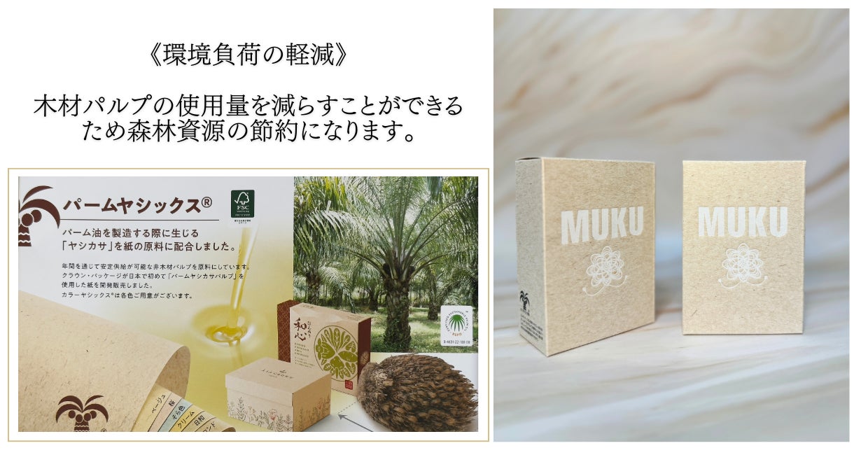 このヤシカサパルプを使うことで森林資源の節約、大気中のCO2削減に貢献します。