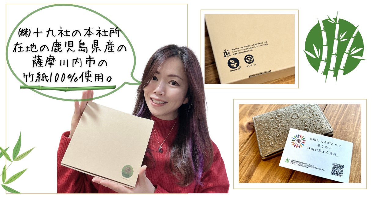 鹿児島県は全国一の竹林面積。〝竹害(放置竹林)″。この発送用の梱包箱や名刺を鹿児島県産の竹紙を使用。