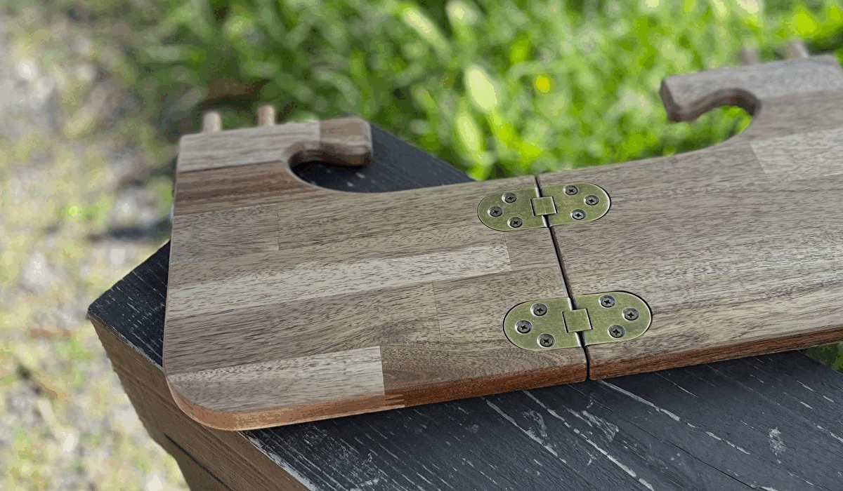 今回の一番の変更点は蝶番(ちょうつがい)を取り付けて折りたたみ式にしたこと。車内での収納がしやすくなりました。