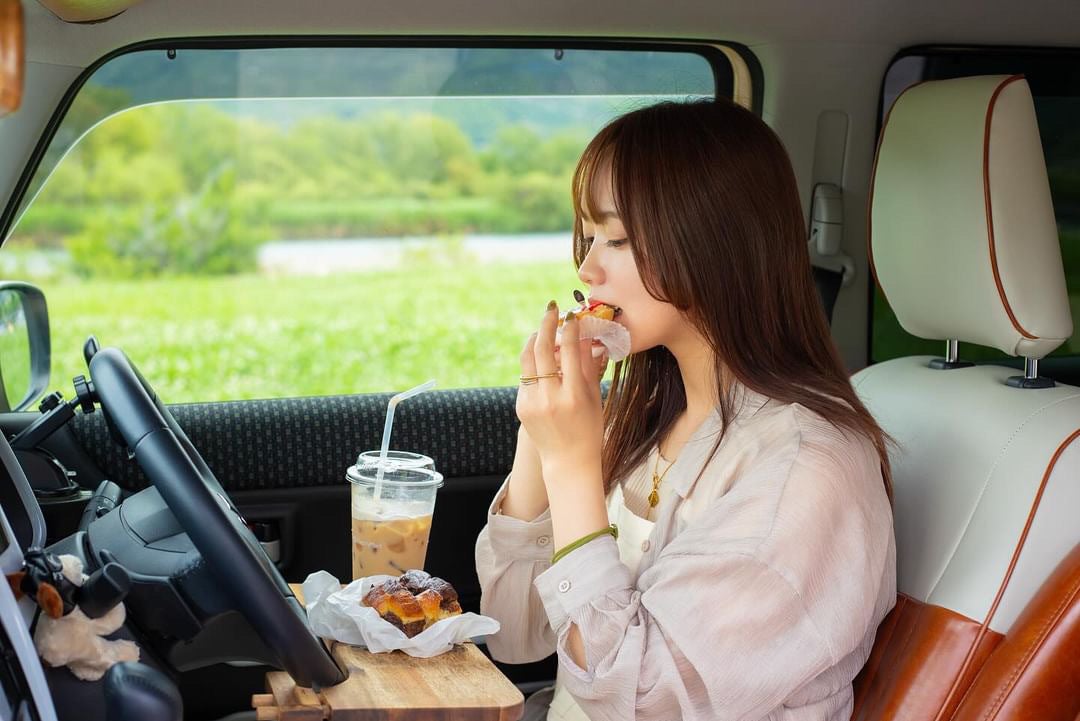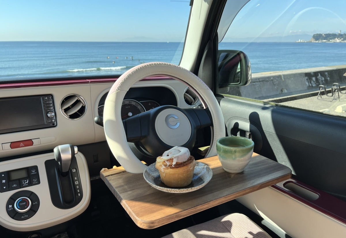 海沿いに車を停めてカフェタイム