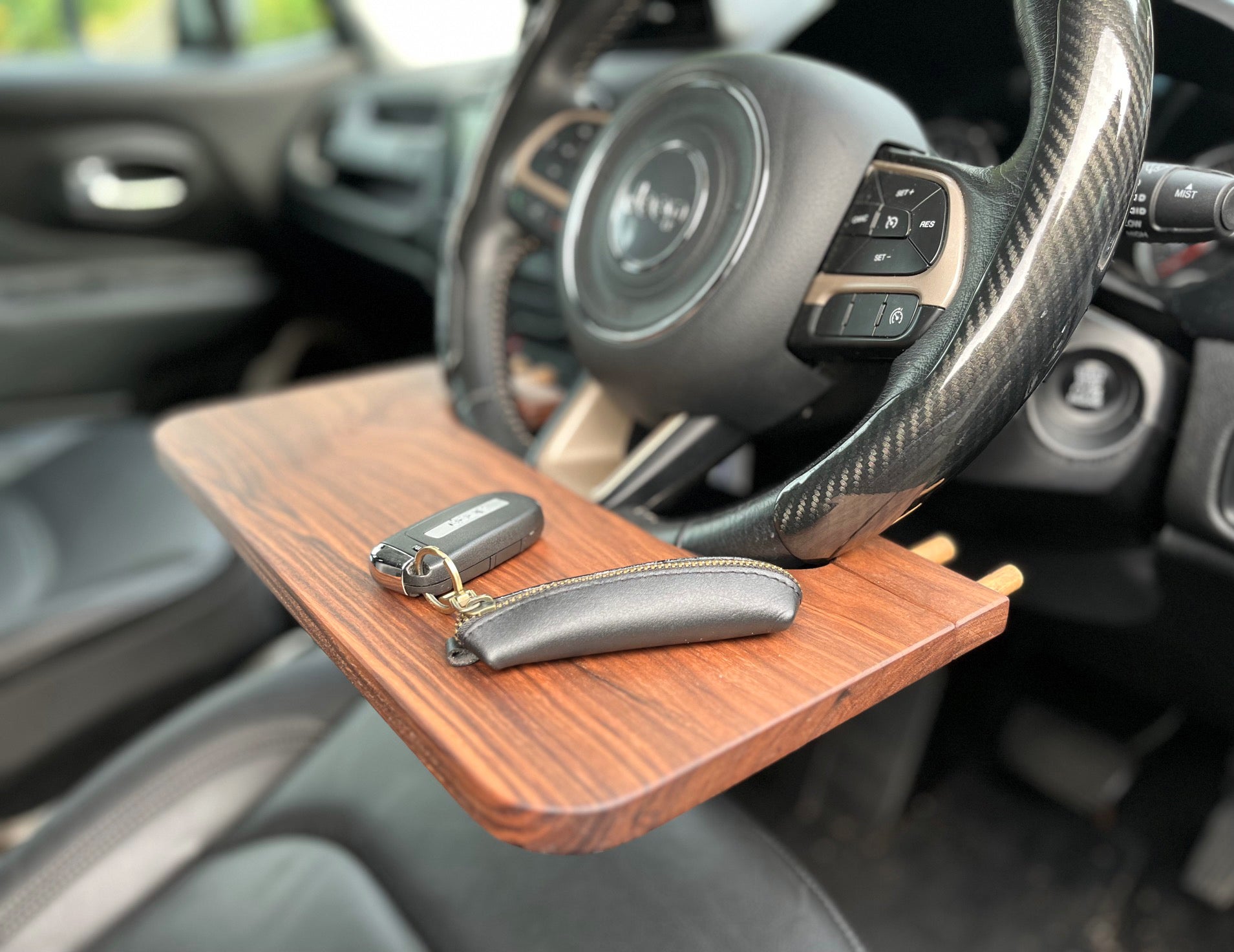 ハンドルに『車載デスク』を取り付けるだけで車内が「書斎」に大変身。ノートパソコンを持ち込んで企画書立案や伝票整理、文字入力など会社や自宅でできることを車の中でも可能にします。