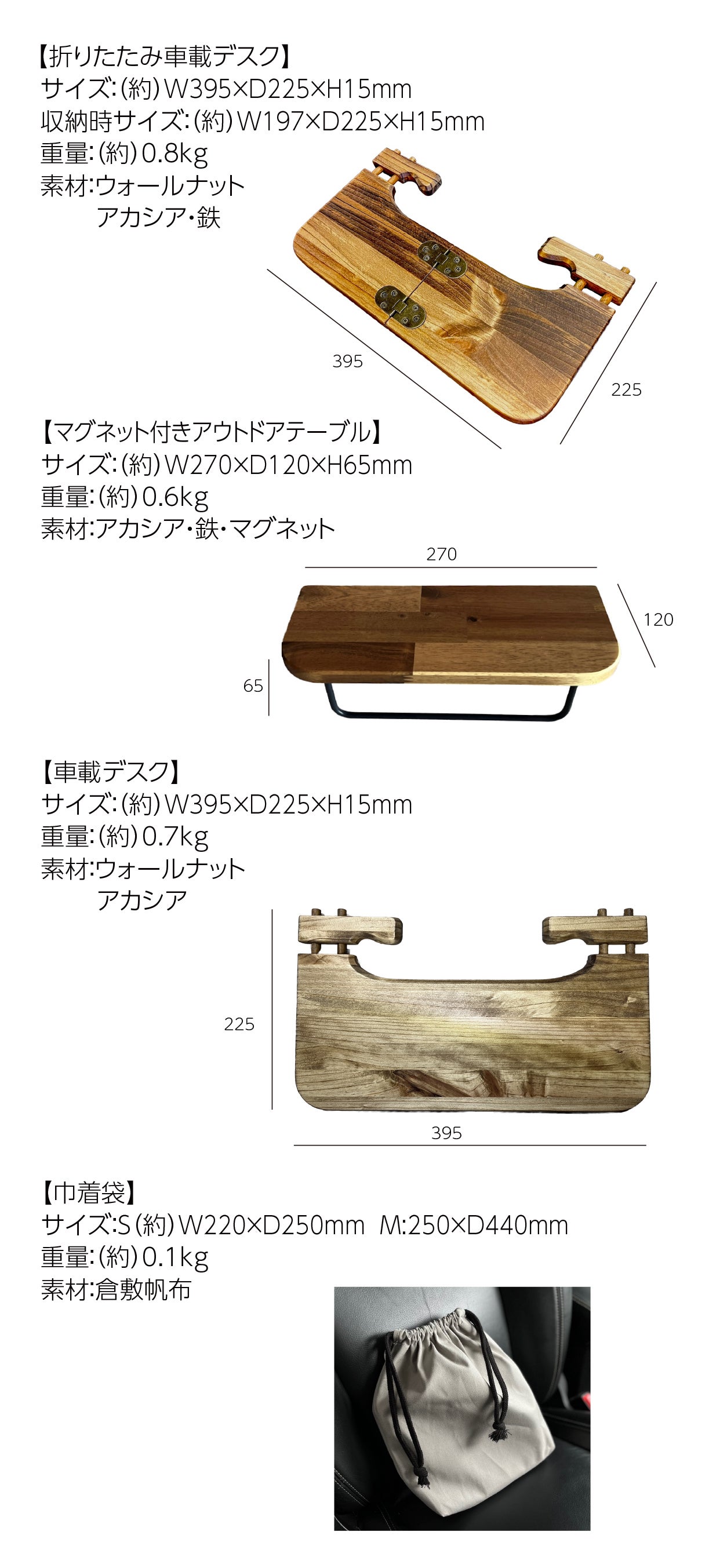 2024/11/06 23:39購入いただきました皆様へご検討されている皆様へプロジェクトをご支援いただいた皆様に心よりお礼申し上げます。早速ですが、帆布収納巾着袋S・Mの購入ページが表示されていませんでした。購入希望の方からのご連絡で知るに至りました。大変申し訳ございませんでした。現在は表示されていますので購入希望の方は確認いただきますようお願いいたします。天板サイズ変更オプション3,500円購入の方はMサイズをお選びください。引き続きよろしくお願い致します。チームSanta Pa もっと見る