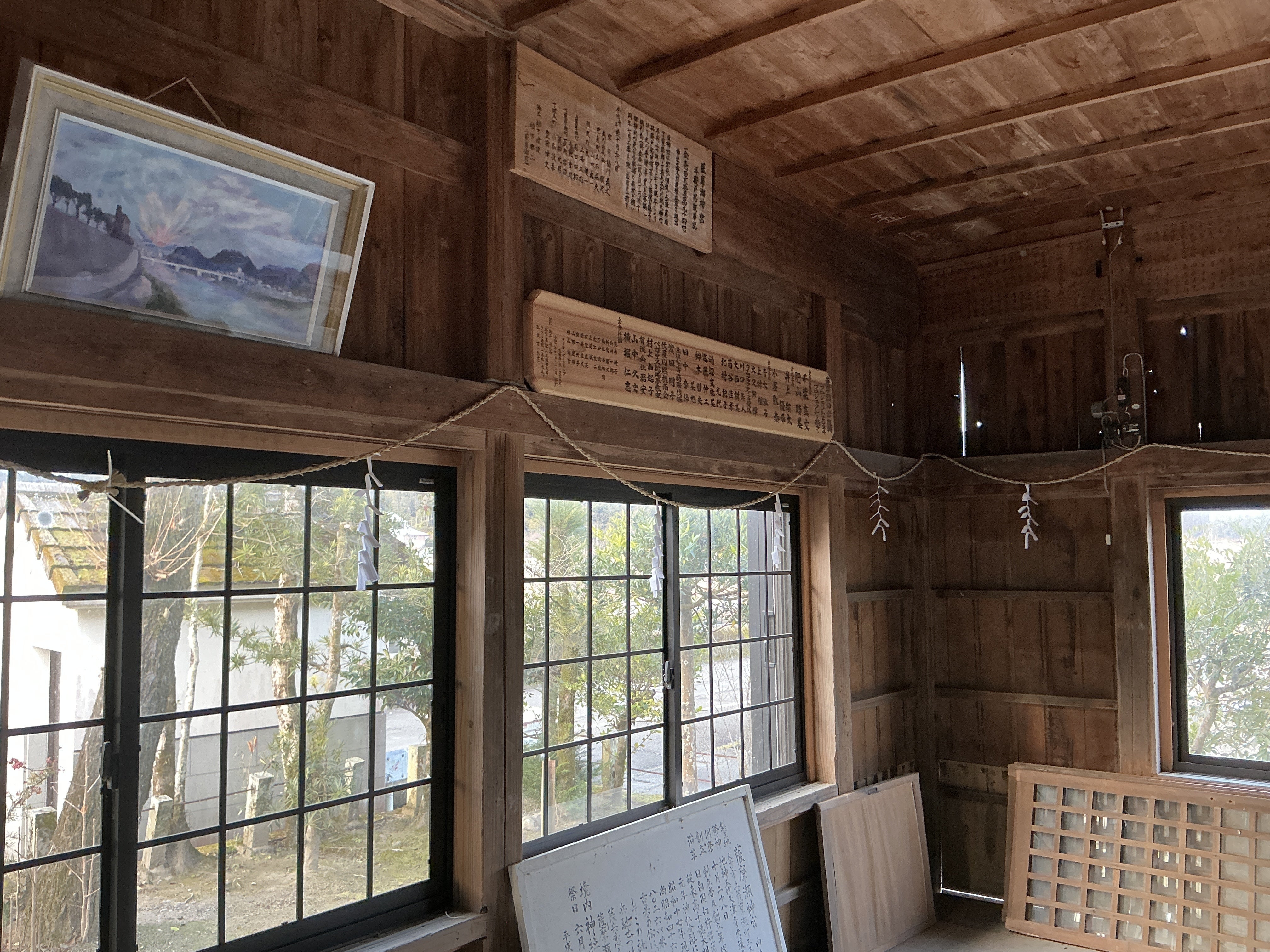 薩摩瀬神宮初の木札、秋季例大祭(毎年10月28日)へのご案内、拝殿に各ご支援者銘板の掲載、各修理物にご支援者銘板記載、薩摩神宮総代会会員権利、地元のお米