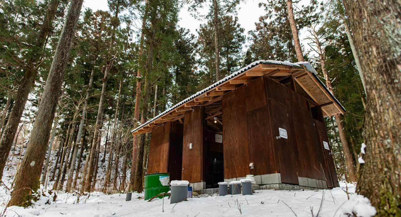 すでに温水洗浄機付き便座が男女別で4つ、男性用小便器が1つあり、お湯の出る炊事場もあることから、自然の中にいながら快適なキャンプが行える様にはなっております。