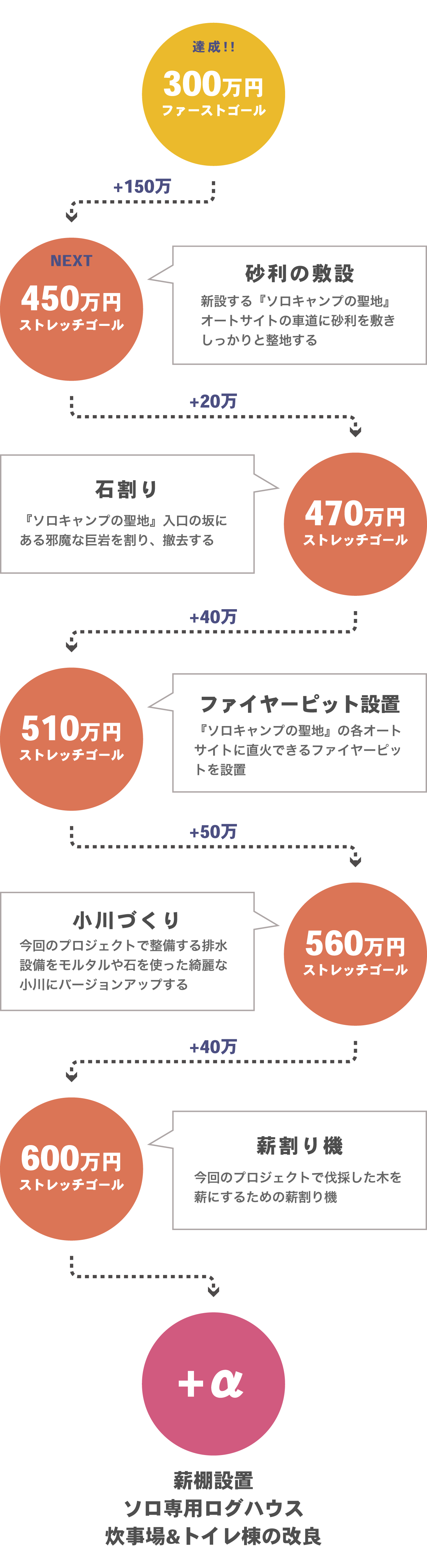 そこで、その砂利代と砂利の運搬や敷設等を行うために第1ストレッチゴールを目指します。