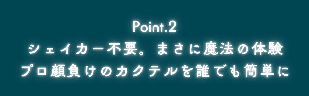 また、飲食店のオーナー様にこそお勧めいたします。シェイカー不要で手軽に魅惑的なカクテルを提供でき、お店のクオリティアップにつながります。時間も手間も省けるだけではなく作る際のユニークなパフォーマンスも必見です。