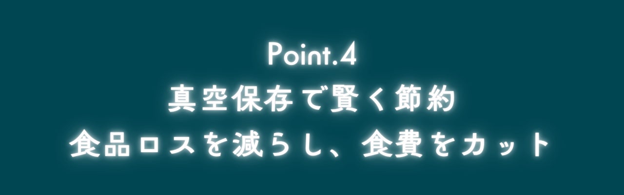 真空保存によって開封後の酸化や腐敗を遅らせ鮮度を長く保つことで、普段の食材を無駄なく使い切れます。セールでまとめ買いした食品もより長持ち。コストパフォーマンスの面でも非常にお得です。