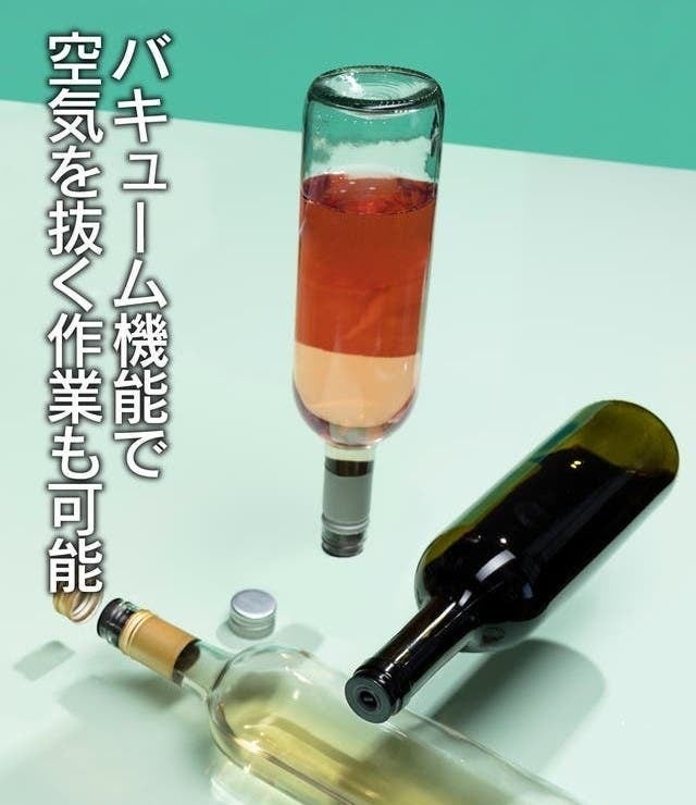 たとえば、開封後に風味が2日程度で劣化してしまう赤ワインも、付属の専用ボトルキャップを使って空気を抜けば鮮度をしっかりキープ。