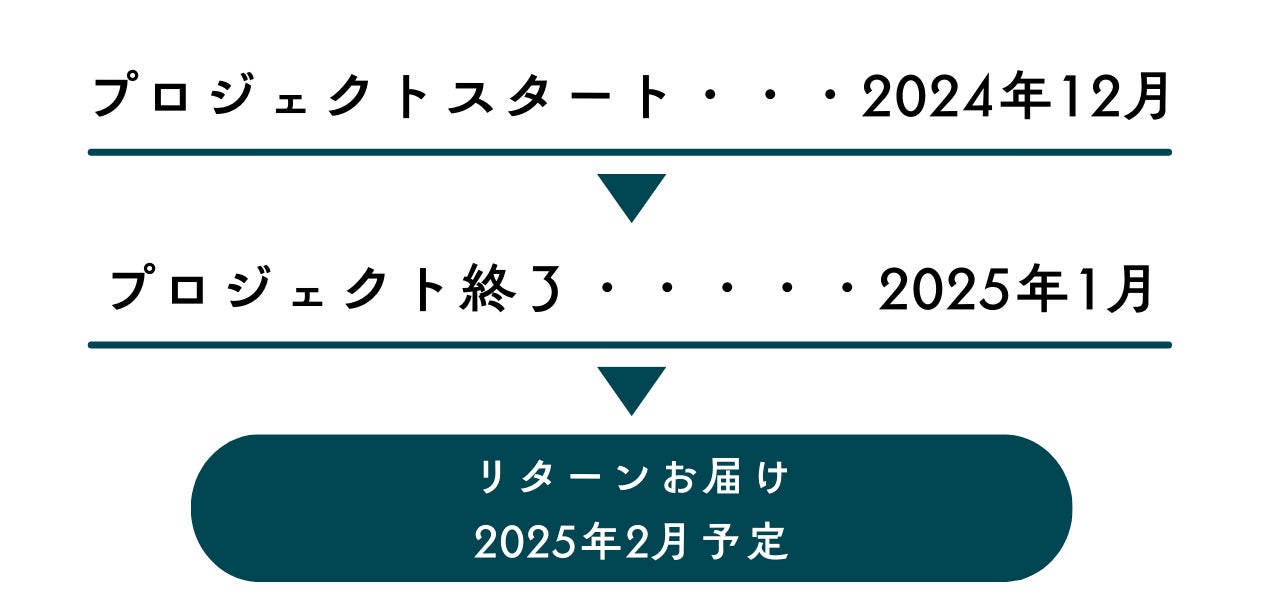 ※本文中に記載させていただいたスケジュールは、あくまでプロジェクト公開時点の予定です。ご支援の性質上、配送遅延のおそれがございます。原則として、配送遅延に伴うご支援のキャンセルはできませんが、リターン配送予定月から3ヵ月を超えた場合には、希望者に限りキャンセルにて対応させていただきます。