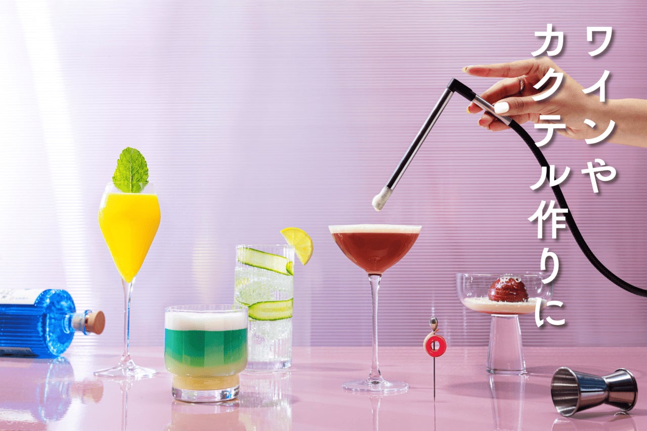 カクテルグラスにレシピを注ぎ、ノズルを差し込むだけ。空気を利用した曝気(ばっき)で、わずか数秒で滑らかに撹拌され、プロ顔負けの美味しいカクテルが完成します。