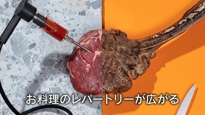 簡単な操作で調味料を食材の内部に浸透させます。これにより、短時間でしっかりとした味付けが可能となり凝ったお料理も時短しつつ味わい深いものとなります。