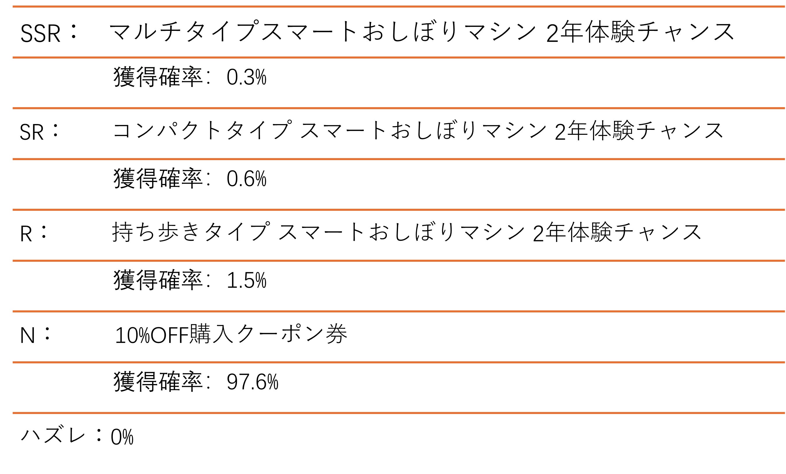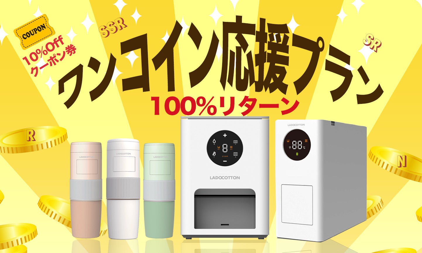 応援いただく方にくじで3種類リターン品のうち1品を2年間体験を提供いたします。同時にありがとうクーポン券(10%OFF)も発行いたします。
