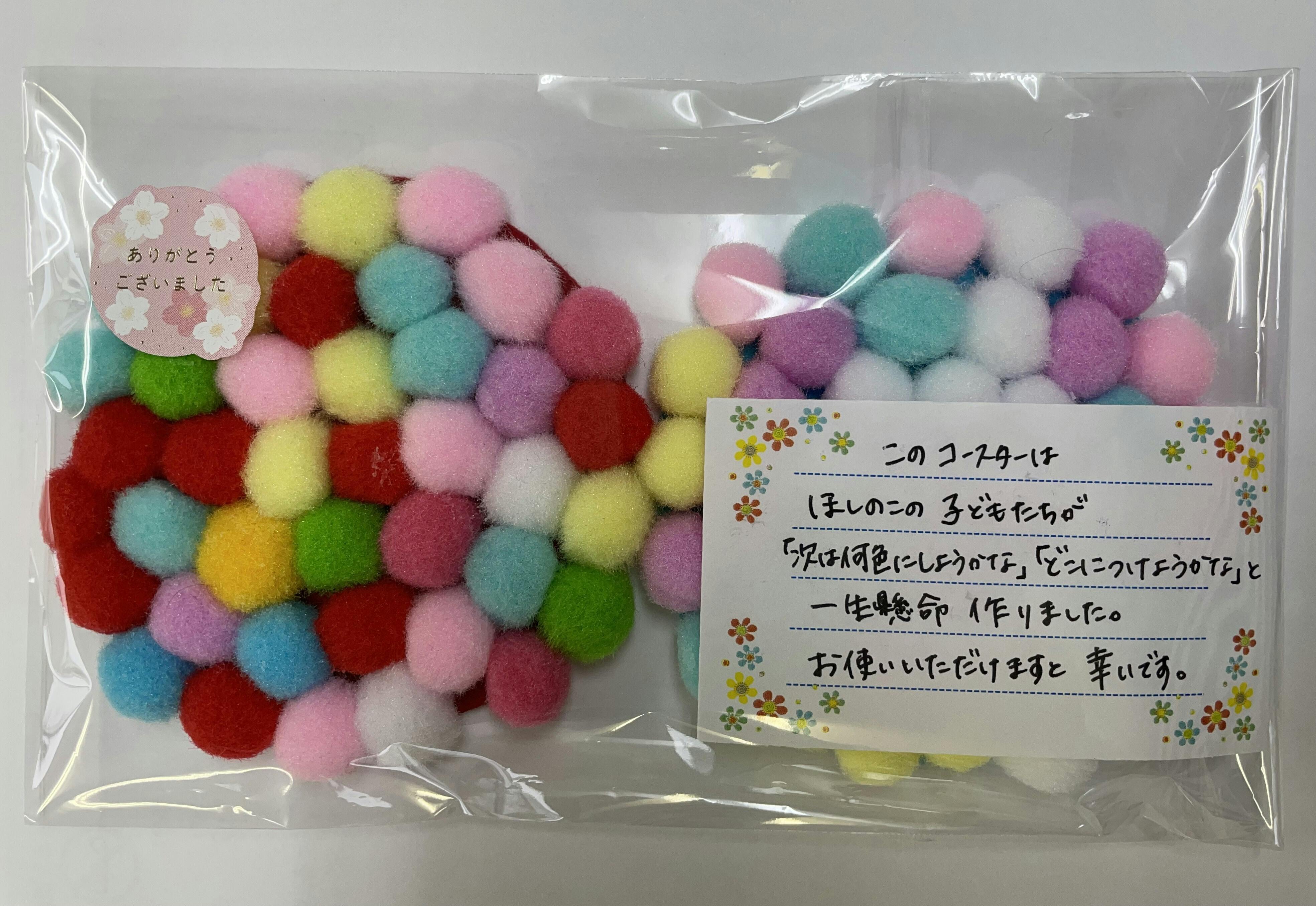 児童発達支援事業所「ほしのこ」に通う子どもたちが一生懸命お礼状とお礼の品(コースター)を作成しました。