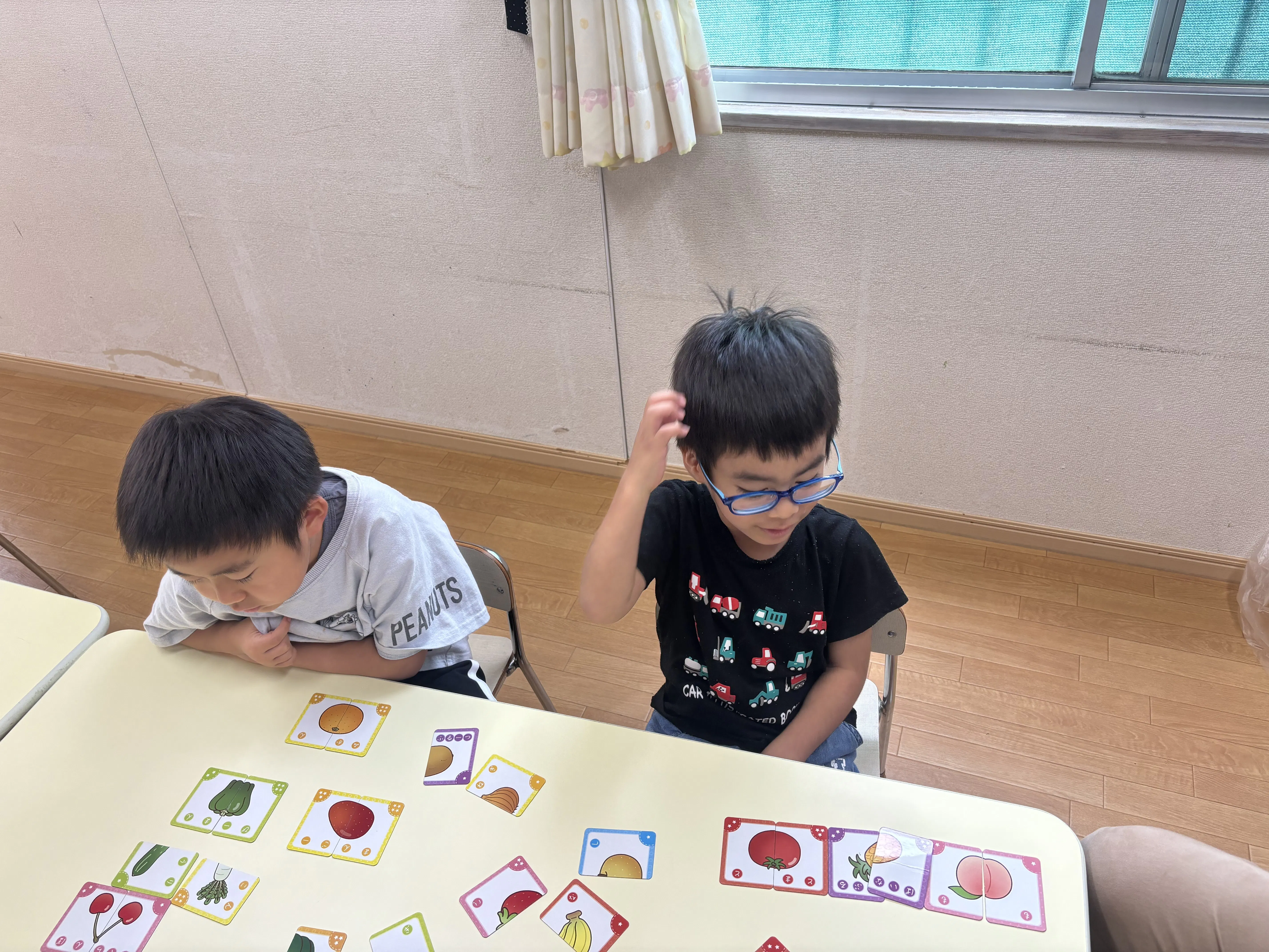 10名定員の小さな集団の中で、成長・発達をくり返し、やがて大きな集団で能力を発揮できるようになるように練習しています。(写真は「絵合わせカードで遊んでいる様子」)