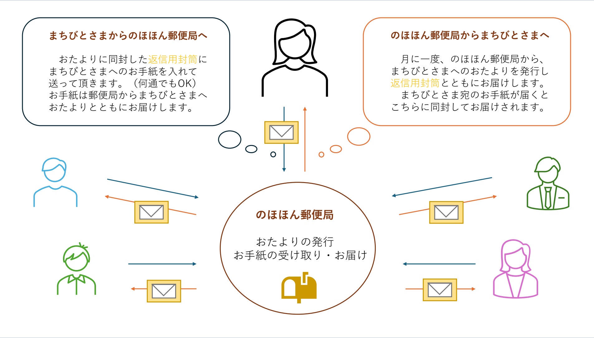 手紙のやりとりは、利用者である「まちびとさま」から、私の運営するサービスである「のほほん郵便局」を介して行われるため、文通相手に住所や名前を知られる心配はありません。