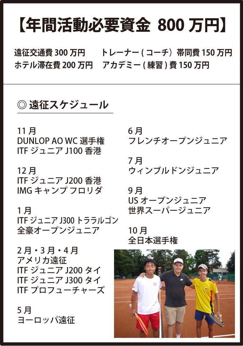そして、次なる目標はウィンブルドンをはじめとするグランドスラムジュニアで活躍し、ジュニア世界一になること!!