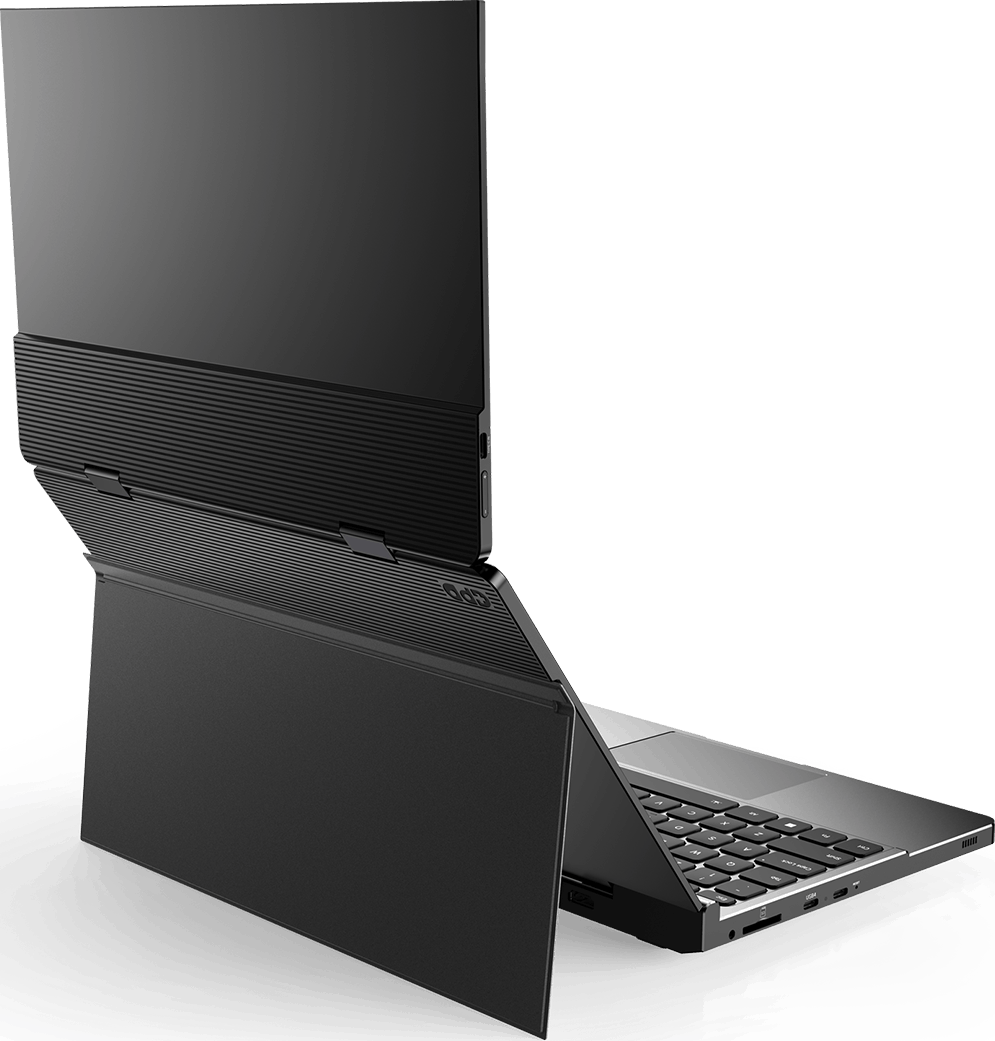 GPD DUOは、セカンドスクリーンがメインスクリーンと合わさる形で折りたたまれている、デュアルディスプレイラップトップです。