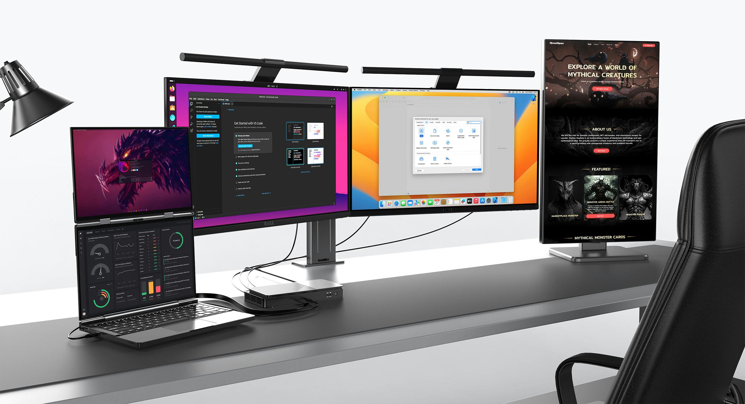 DUO + G1の強力なコンピューティングパワーと仮想マシンの組み合わせにより、マルチスクリーン、マルチシステムのセットアップは開発者にとって夢のプラットフォームになります。異なるシステム間で複数のIDEを簡単に開き、クロスプラットフォームアプリケーションを簡単に構築できます。