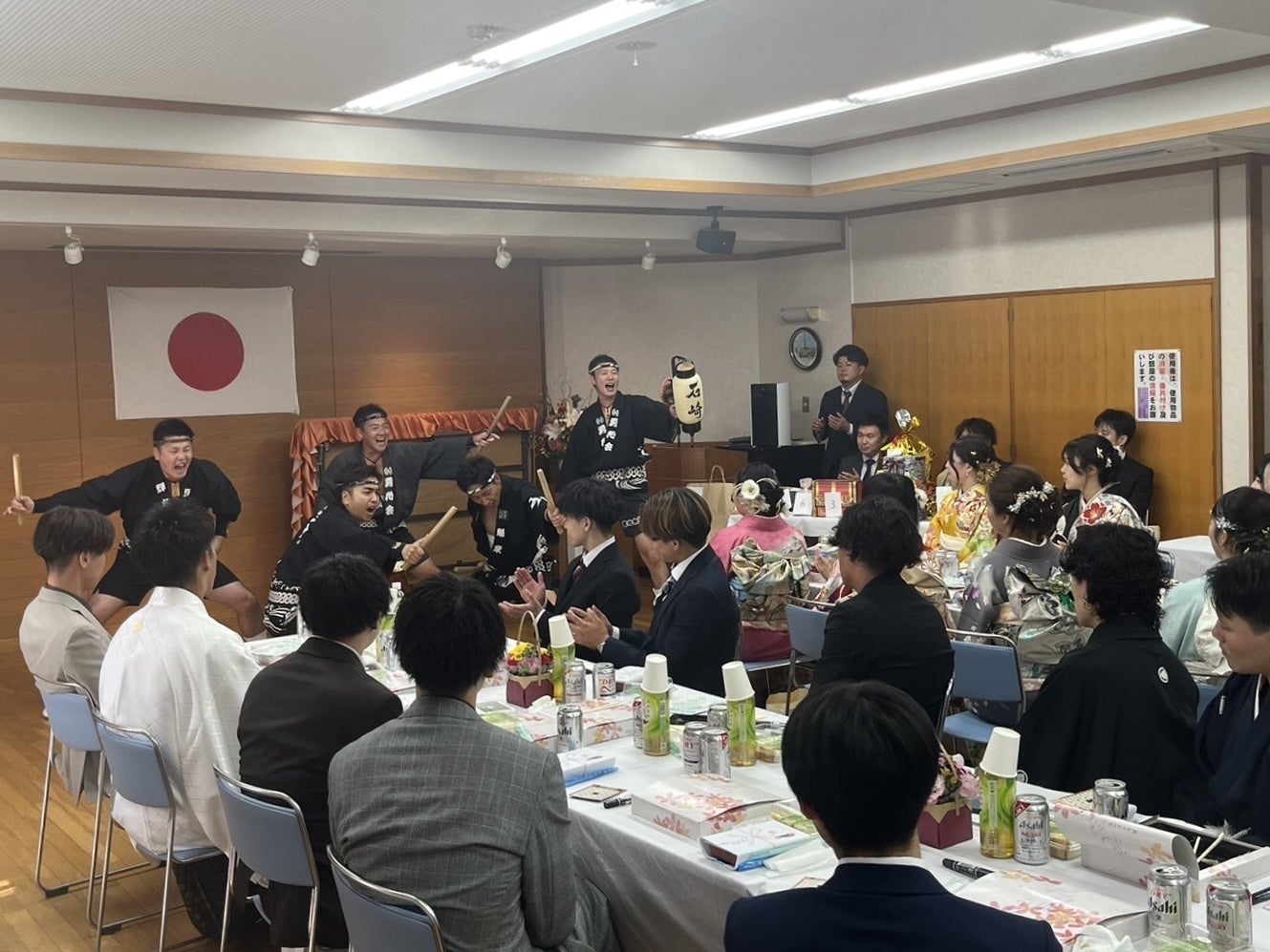 震災の影響により延期となっていた「はたちのつどい」にて、祝い太鼓で石崎町の二十歳の方々をお祝いさせて頂きました。